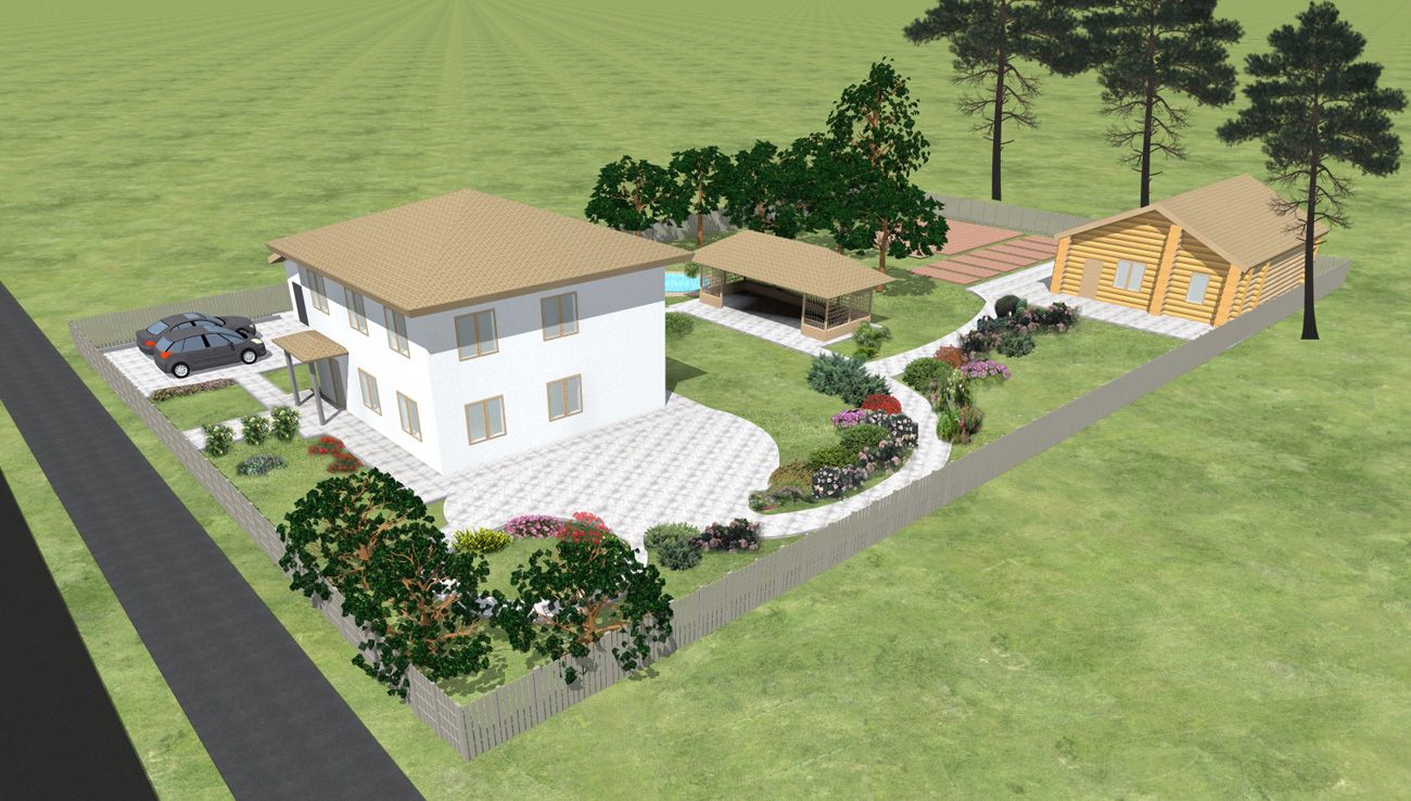 Проект озеленения выполнен в рамках учебного процесса для уже существующего участка в с. Частая Дубрава. На территории возведен дом и построена дача. Территория с относительно ровным рельефом в дачном поселке. Требованиями к проекту было создание зонирования с различными функциями: огород, сад, баня, зона отдыха с беседкой, свободное пространство и парковка.