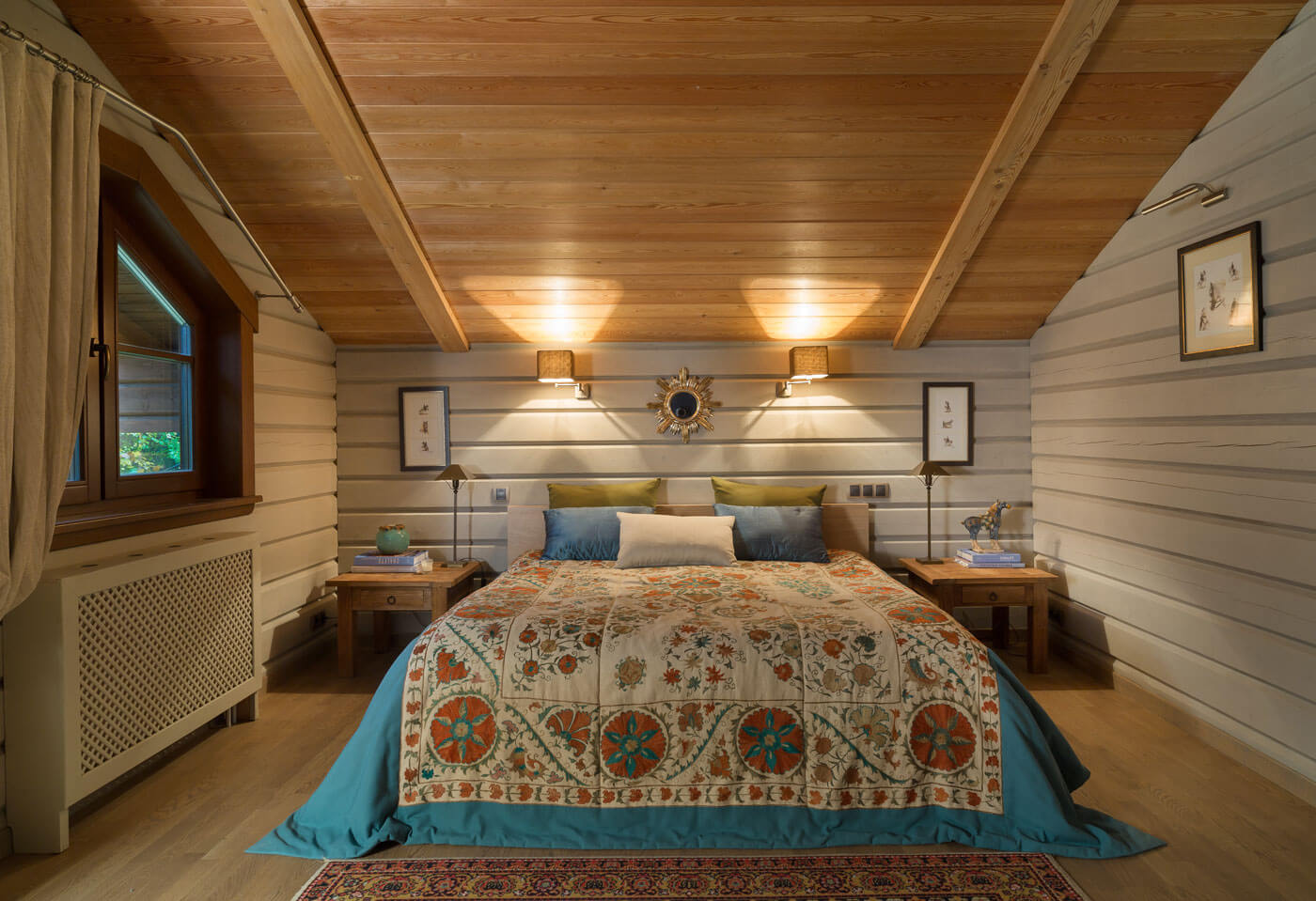 На участке среди лесных деревьев построен дом из клееного бруса, органично вписанный в окружающую среду. В нем созданы изящные, отмеченные легкой иронией интерьеры - комфортное и непринужденное пространство с неповторимой атмосферой. Этому, в частности, способствует специально спроектированная для данного дома мебель, а также отреставрированные винтажные предметы и аксессуары.
