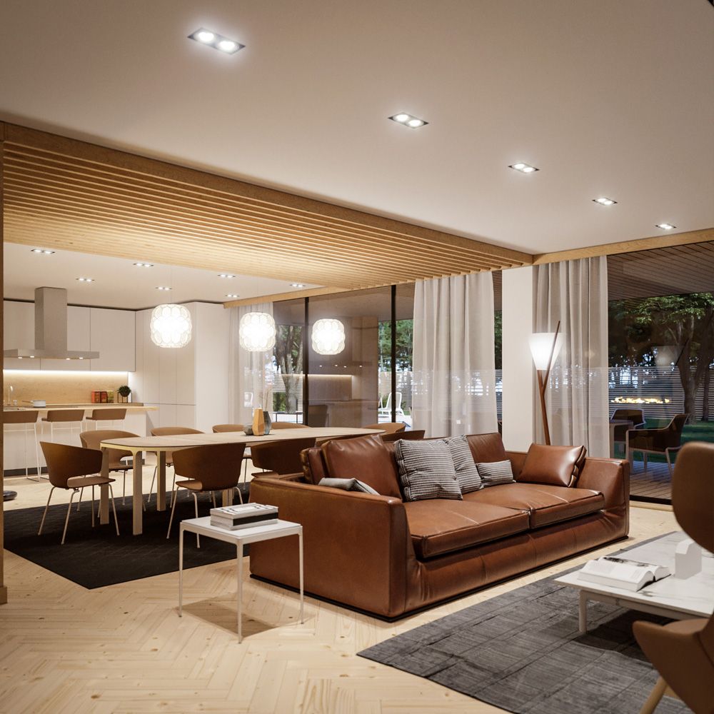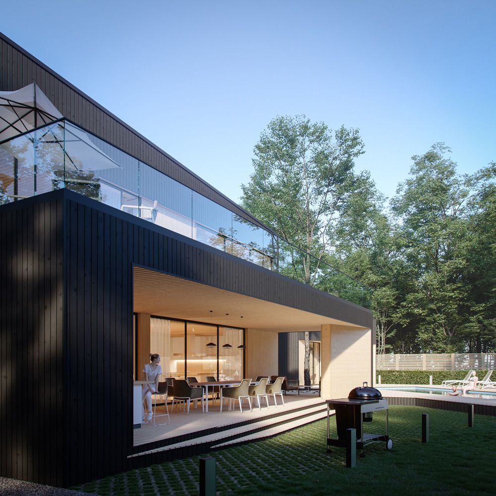 Основной идей было создать строгий, лаконичный дом, отвечающий основным тенденциям современной архитектуры, но при этом притягивающий своей природностью и экологичностью.