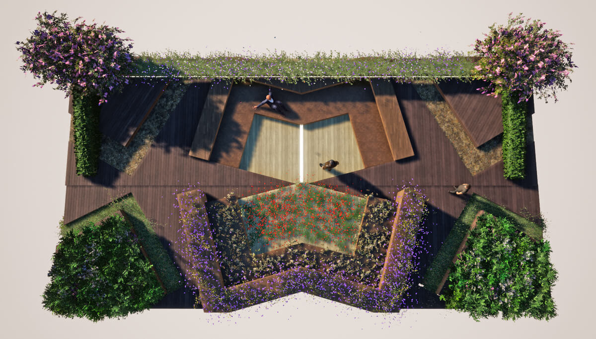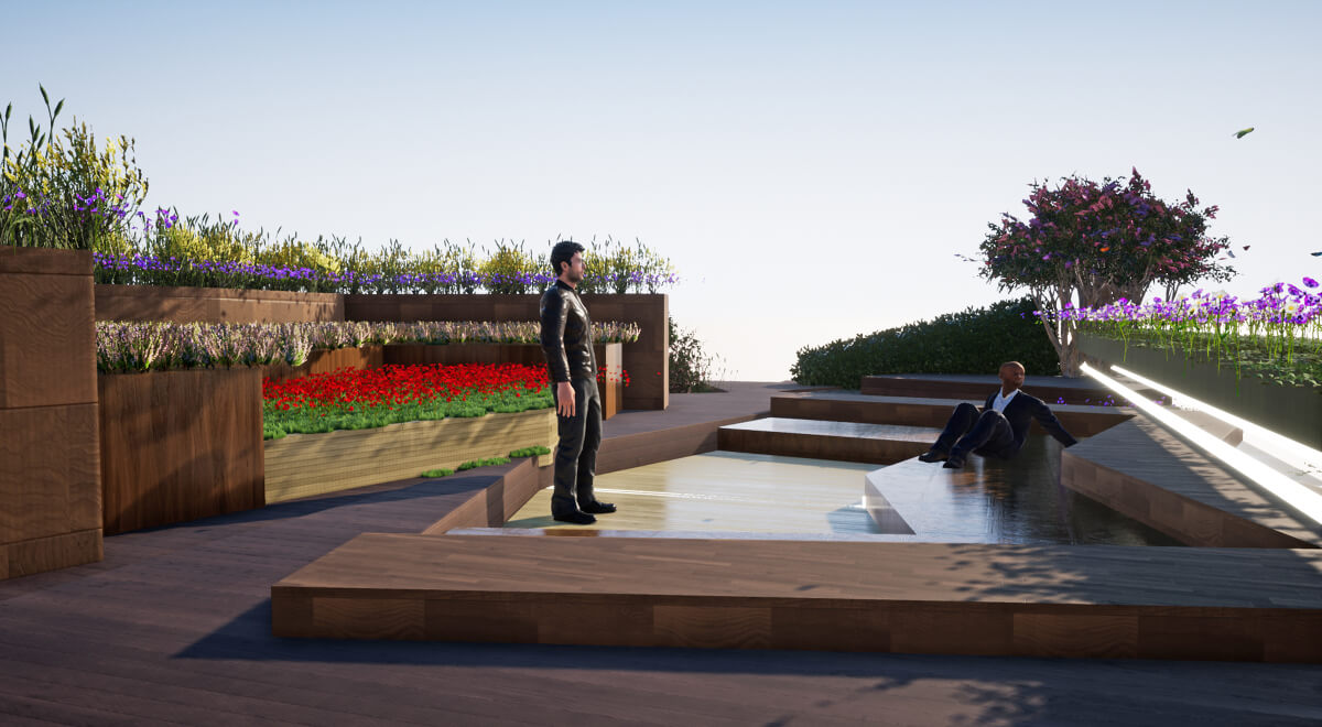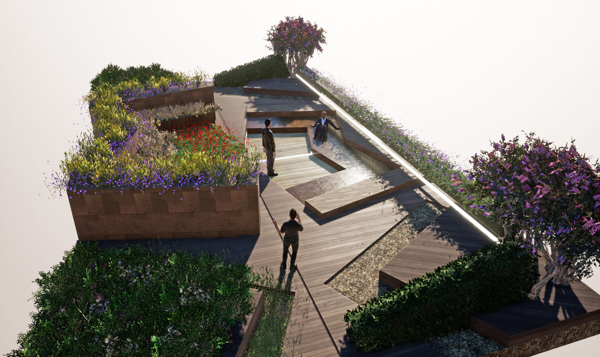 Проект называется «Динамика», потому что авторы считают, что это название отражает его уникальность и концептуальность. Это пространство, несущее в себе покой и гармонию, расслабляет, умиротворяет и благоприятно сказывается на самочувствии человека в саду.
