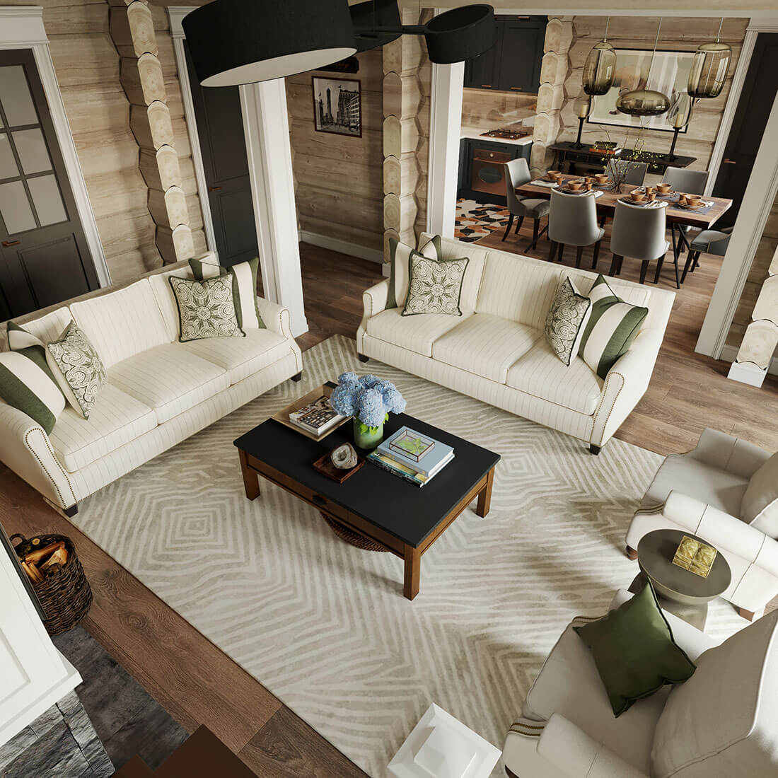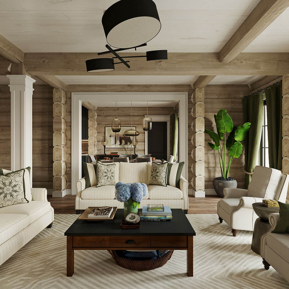 Дизайн интерьера для дома из кедрового лафета в поселке Риверсайд