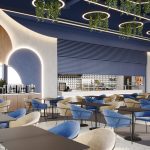 Интерьер ресторана выполнен в современном архитектурном стиле с ярко выраженными элементами бионического и параметрического дизайна. Пространство формируется за счет гармоничного взаимодействия плавных линий, лаконичных форм, актуальных отделочных материалов и тщательно подобранной палитры.
