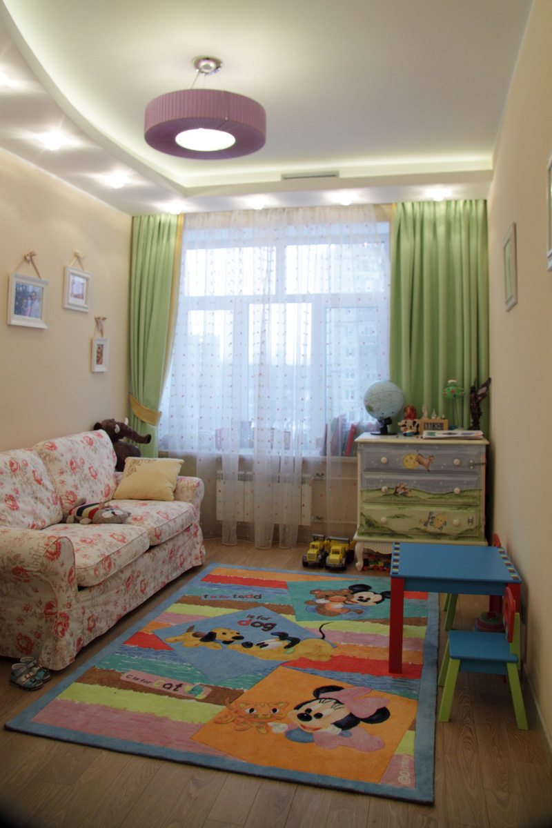 Для детской комнаты необходим ковер на полу. Он имеет и функциональное значение, и эстетическое. В данном проекте мальчик менял свои пожелания по цвету и рисунку ковров несколько раз, чем озадачил всех.