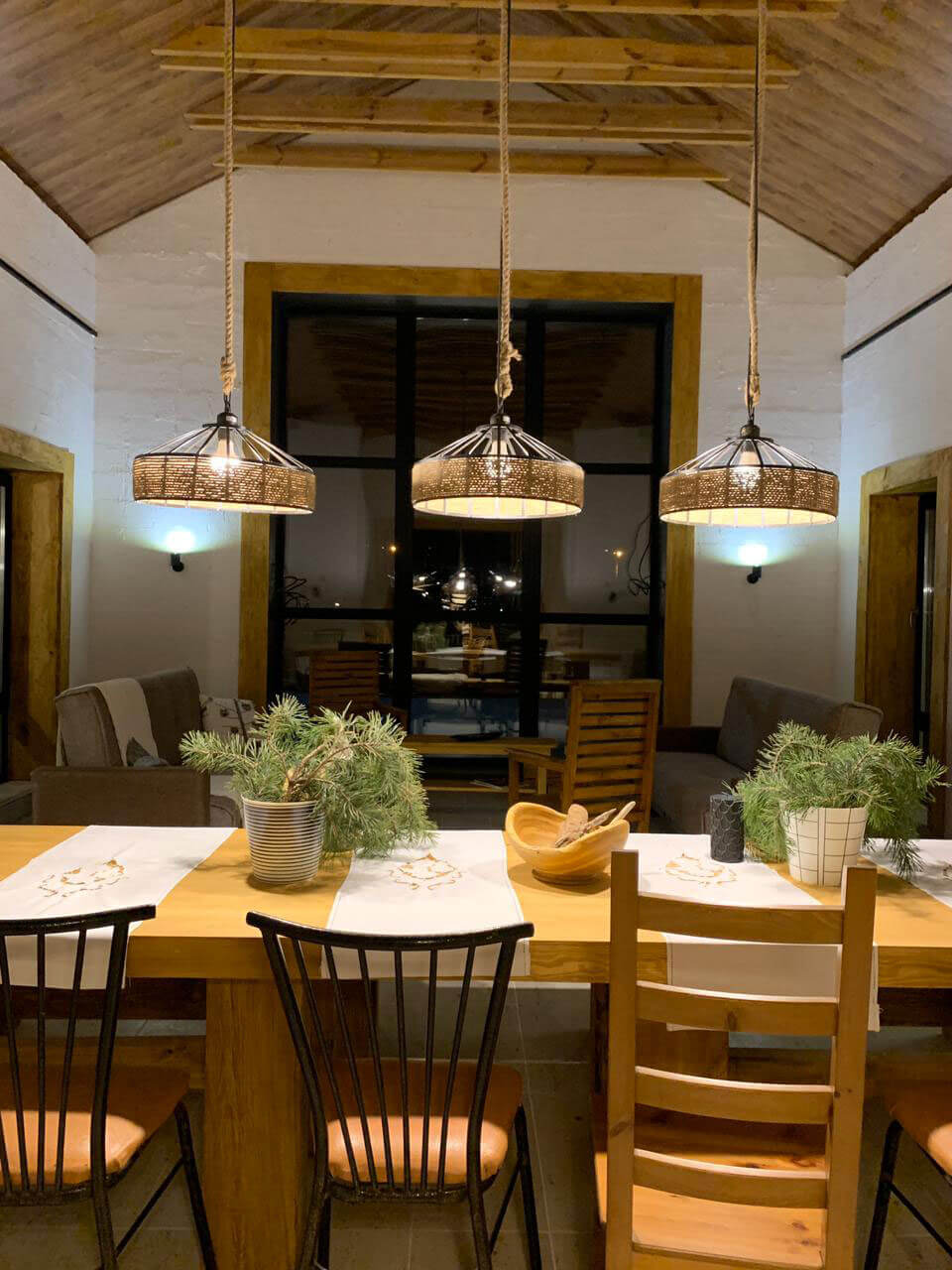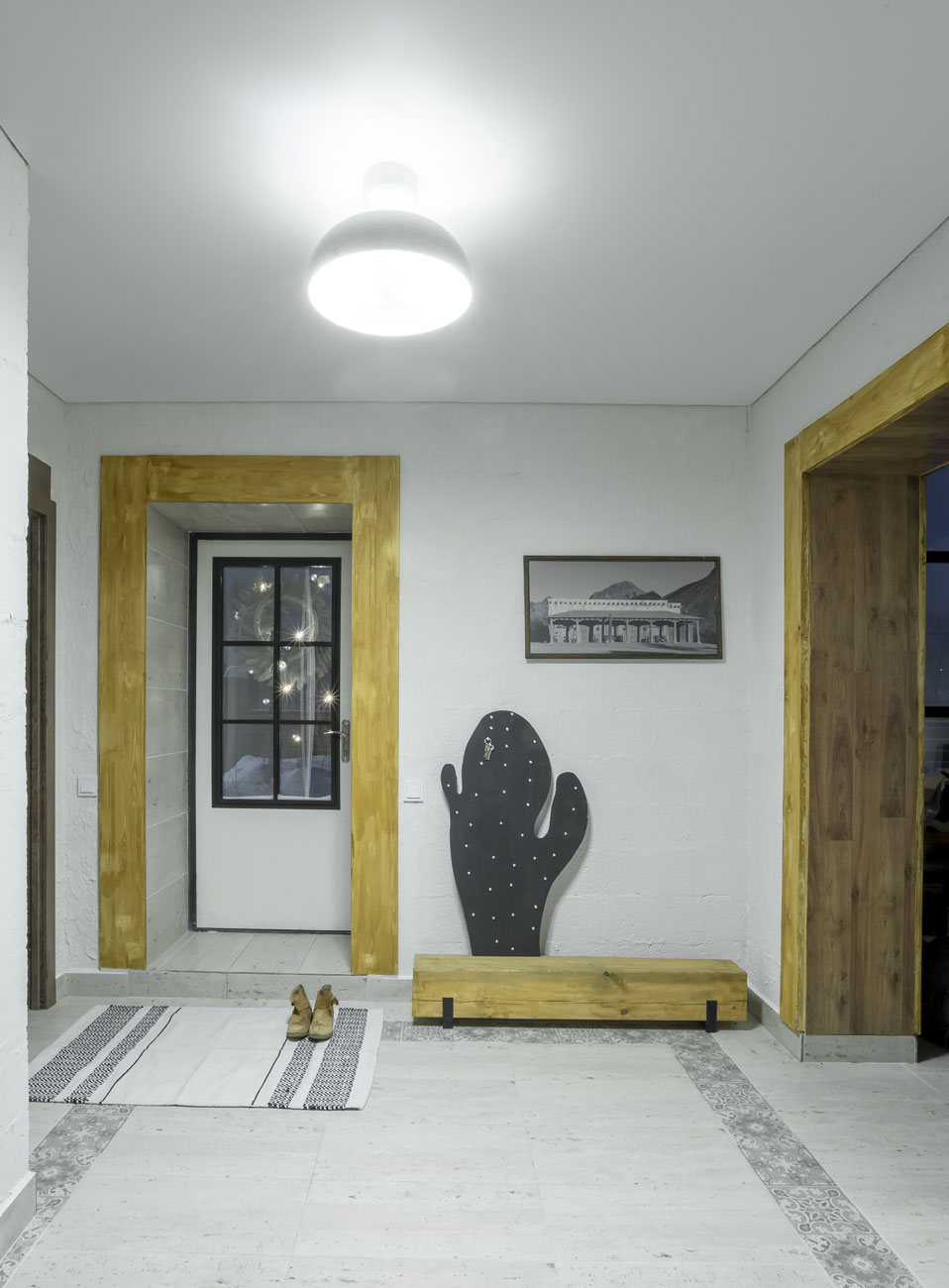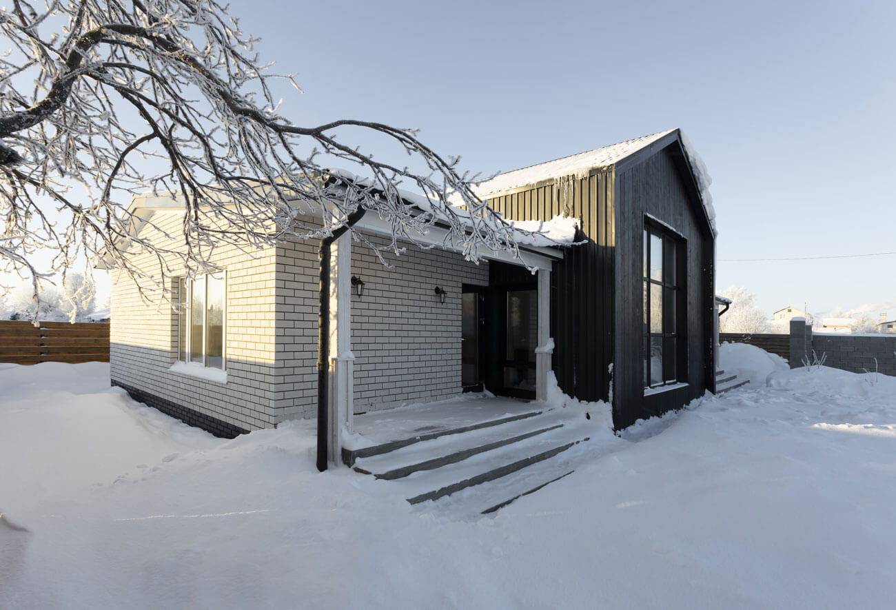 Многие материалы и оттенки присутствуют как на фасаде дома, так и в интерьере. Благодаря чему дом смотрится гармоничным и цельным.