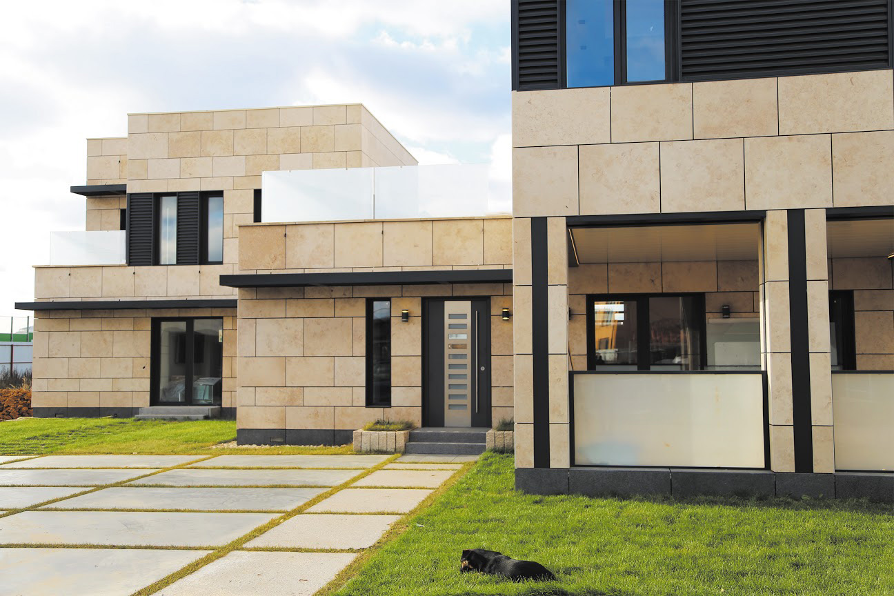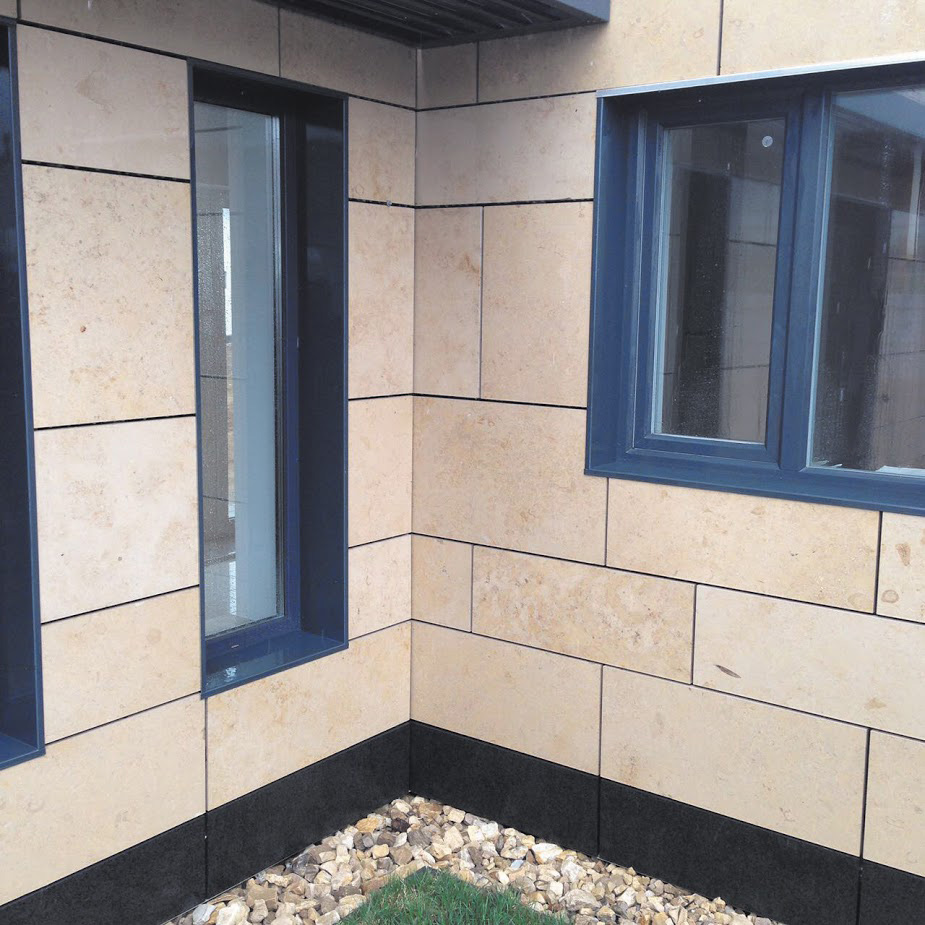 Вентфасад из натурального камня – специальная вентилируемая система, выполняющая сразу несколько функций – защита наружных стен, их укрепление, отвод конденсата, смещение точки росы в нужную сторону и дополнительная теплоизоляция.