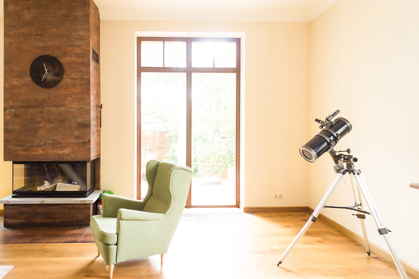 В доме продумано все до мелочей. Детская площадка просматривается из окна кухни, что позволяет присматривать за детьми, не отвлекаясь от готовки, из игровой зоны на промежуточной межэтажной площадке предусмотрен выход на малую террасу над гаражом, где дети могут играть, не выходя из дома. Из уютного кабинета с двумя окнами можно во время работы любоваться цветущим садом и видеть всех приезжающих в гости.