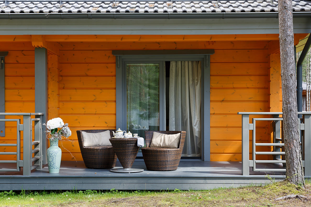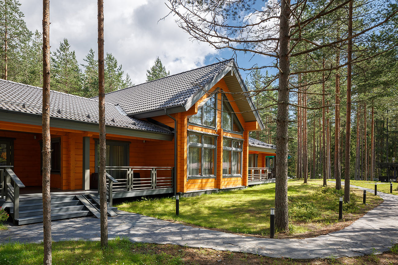 Этот небольшой дом из клееного бруса (общей площадью 284 м²) построен на Карельском перешейке, на территории коттеджного поселка, расположенного в 18 км от Санкт-Петербурга.