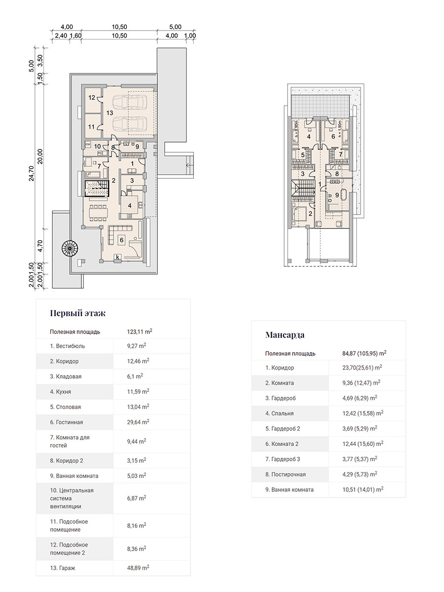 На мансардном этаже устроены три спальни с собственными гардеробными, ванной комнатой и постирочной. Проект поддержан энергосберегающими технологиями: на крышу вынесены солнечные панели, а проект отопления выполнен на базе теплового насоса.