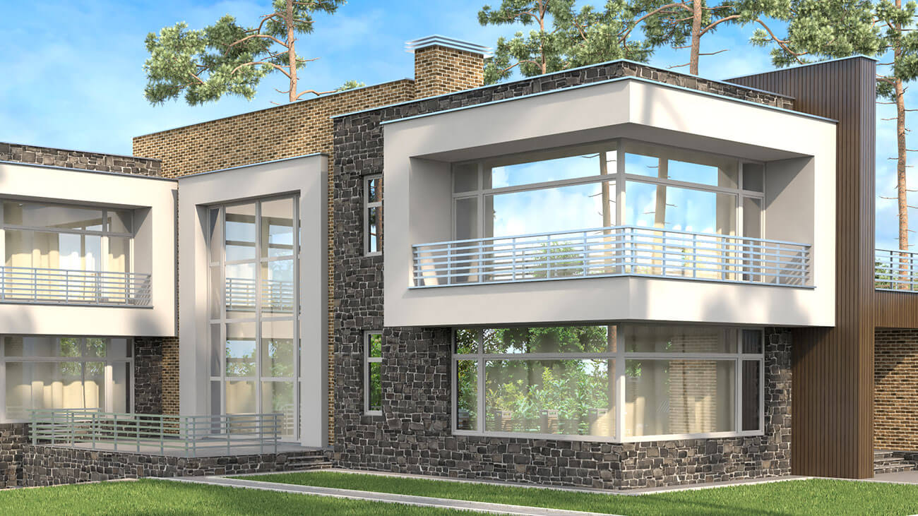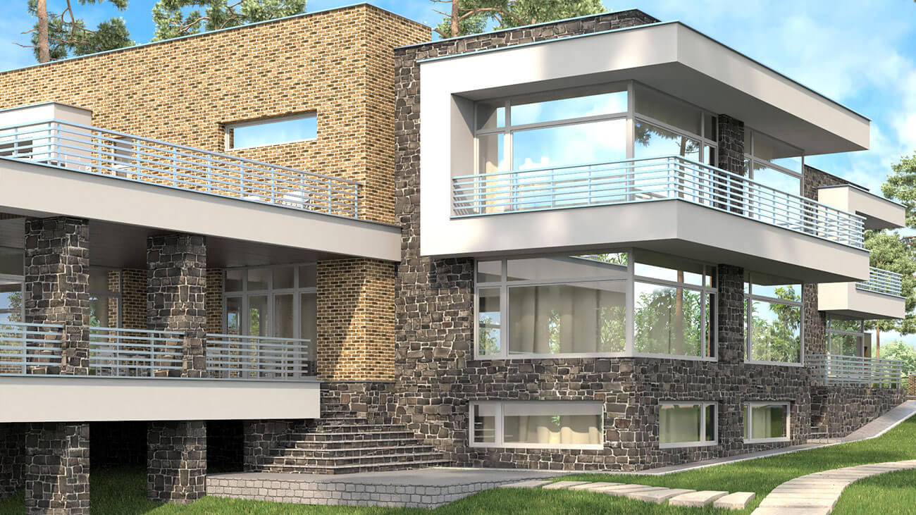 Проектом предусмотрено применение как современных, так и классических экологически чистых материалов. В отделке фасадов применено сочетание клинкерного кирпича, натурального камня и фасадных панелей.