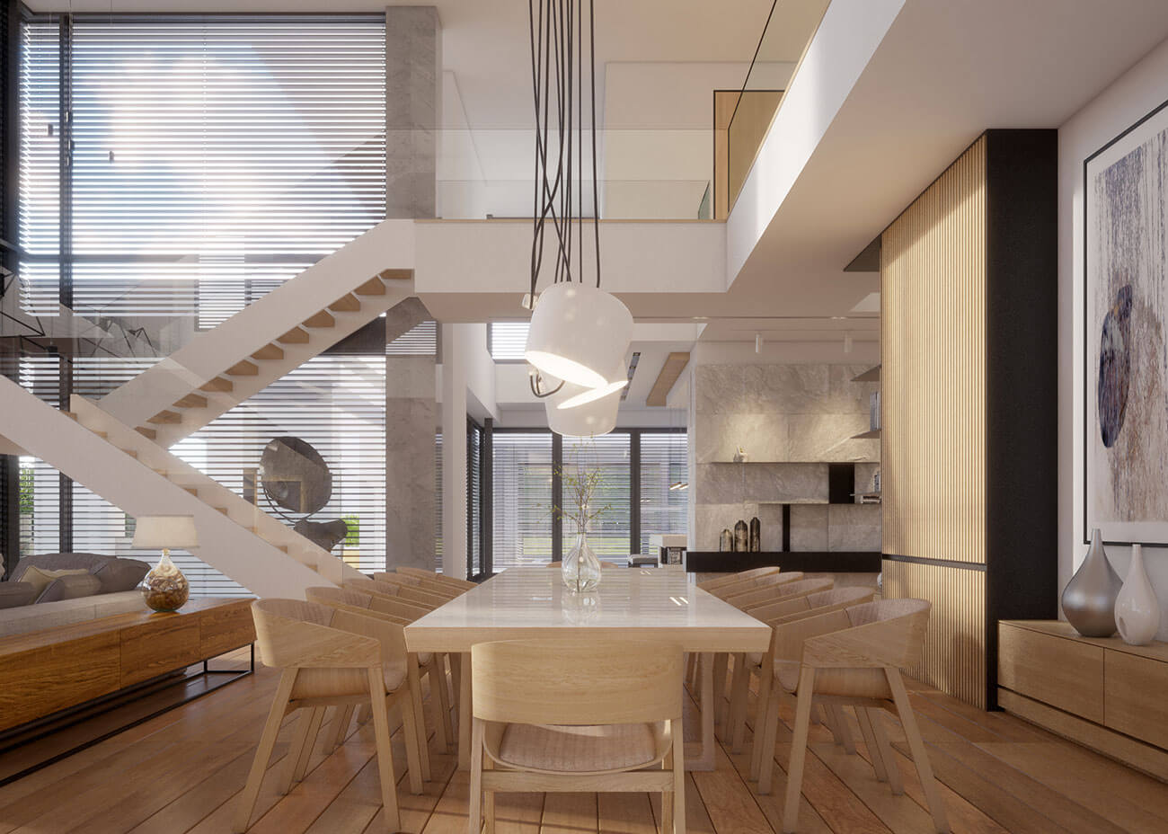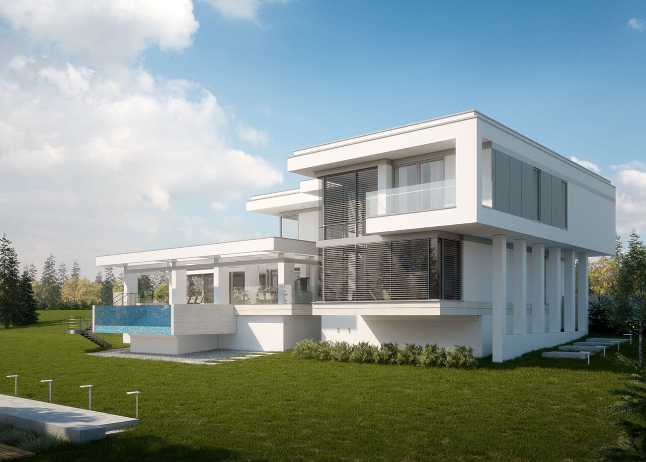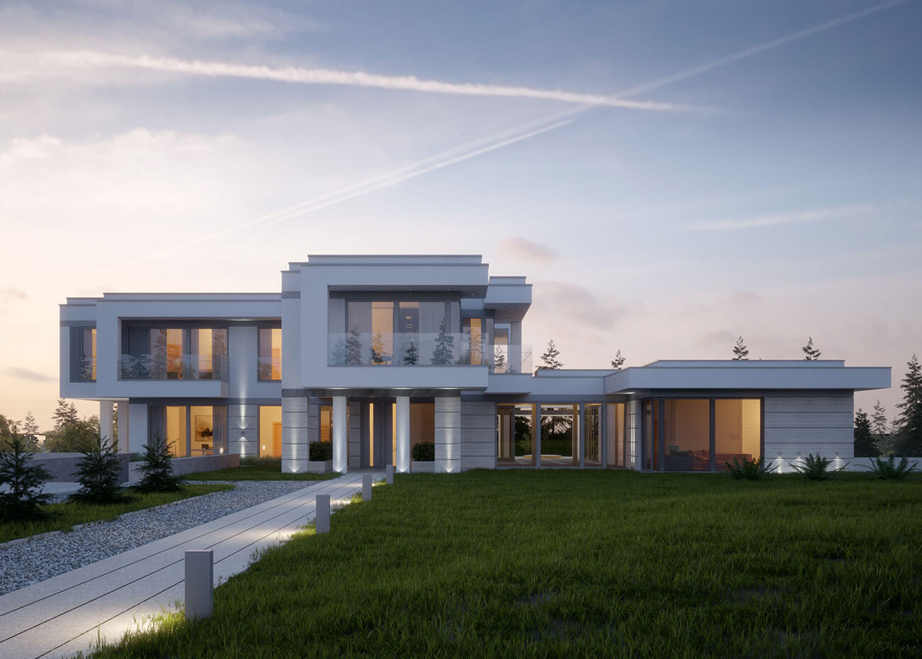 Проект современной резиденции, которая находится на этапе строительства в Польше. Дом площадью 980 кв. м рассчитан на большую семью из трех поколений, которые высоко ценят комфорт, современность и оригинальность. Фасад двухэтажного здания привлекает легкостью своей формы. Большая площадь остекления дома обеспечивает оптимальное естественное освещение помещений и прекрасный вид на окрестности.