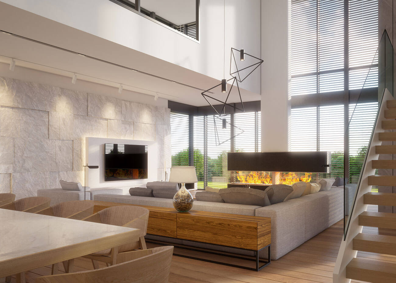 Отделка фасада здания выполнена с использованием современных кварцевых плит, которые прослужат многие годы без изменений своего внешнего вида. Большой остекленный бассейн добавляет уникальности этому проекту.