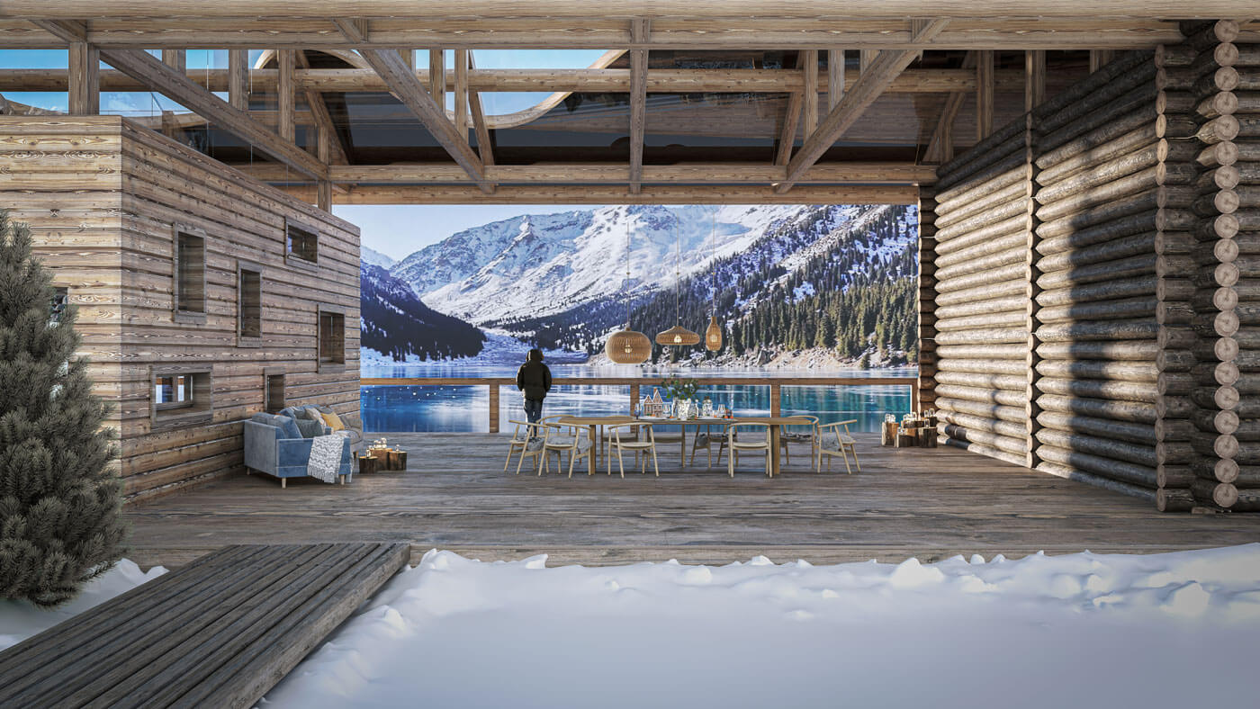 Дом строится в поколениях, не один десяток лет, и мы предполагаем, что каждое последующее поколение достраивает свою дом под общей крышей в эстетических и технологических решениях своего времени. Так например, в первом доме для стен использован деревянный сруб, а два поколения спустя, в продолжение композиции, уже дети, будут использовать не только свободно текучую планировку, но и стены из воздушно-силовых завес, невидимых, но служащих преградой для воздуха и людей. А благодаря технологиям будущего любое помещение в нужный момент может принимать любую форму и предоставлять весь спектр функций, необходимых в домашнем быту. Таким образом, аутентичный материал дерево выполняет функцию объединения не только домов, но и времен. Служит символом преемственности и передачи семейных ценностей и традиций сквозь века.