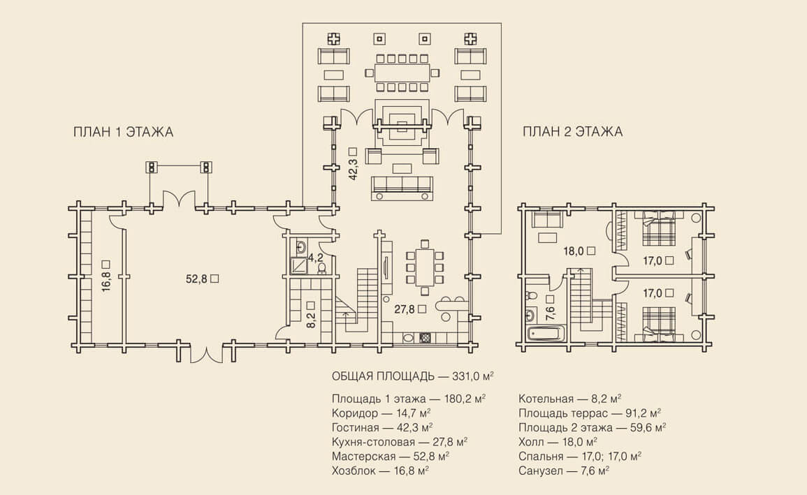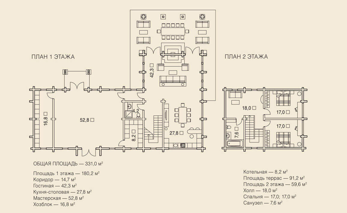 В качестве основного строительного материала выбран профилированный брус прямоугольного сечения 200х200 мм (может быть клееным на усмотрение заказчика).