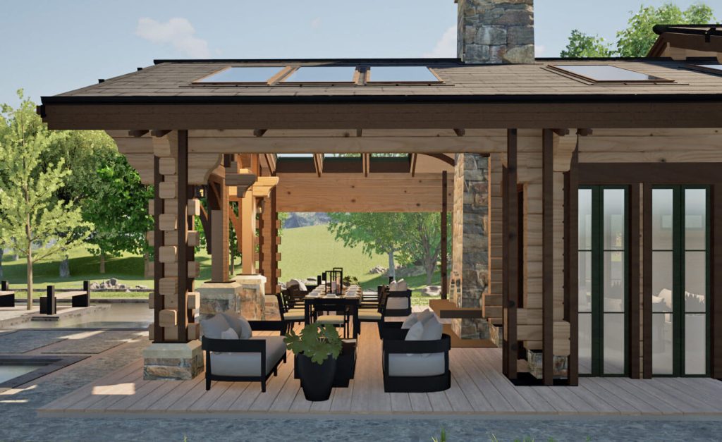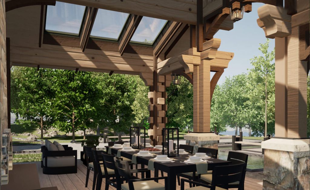 Проект открытой террасы с зоной барбекю — яркий пример функционального и эстетически выверенного пространства, в котором исторические мотивы деревянного зодчества сочетаются с лаконичной современностью. Практичность, долговечность, гармония натуральных материалов, продуманное световое решение и тщательная деталировка обеспечивают этому пространству статус не только удобной бытовой части дома, но и выразительной архитектурной доминанты всего ансамбля.