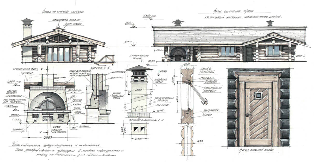 - Кровля: деревянная стропильная система с утеплением, покрытие кровли — дранка из лиственницы.