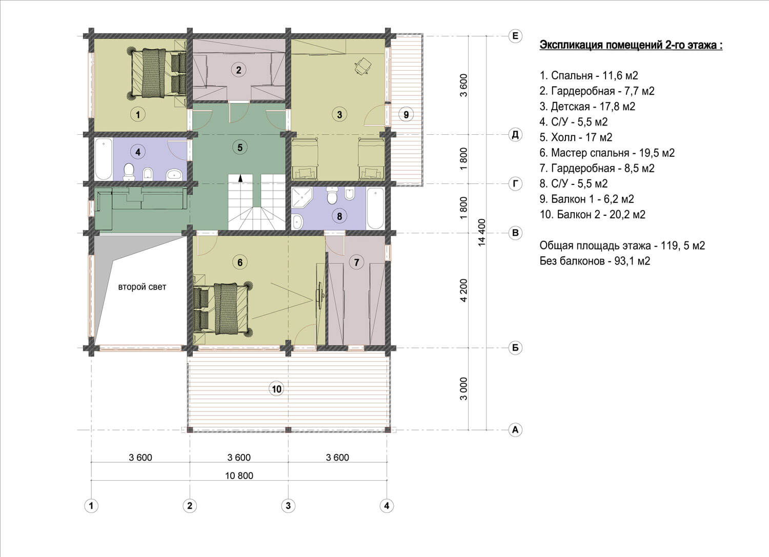 На втором этаже располагаются гостевая спальня, гардероб, детская на 2–4 детей и хозяйская спальня со своим гардеробом и с/у. Из хозяйской спальни есть выход на балкон-террасу с видом на море.