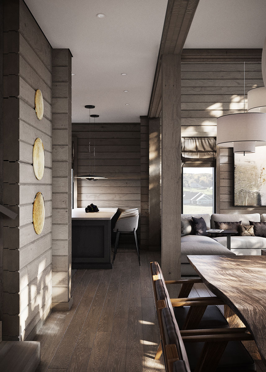 Дом из бруса с 4 спальнями, вторым светом и большими окнами представляет собой просторное и светлое жилье. Брус – это натуральный материал с хорошей теплоизоляцией, что делает дом уютным в любое время года.