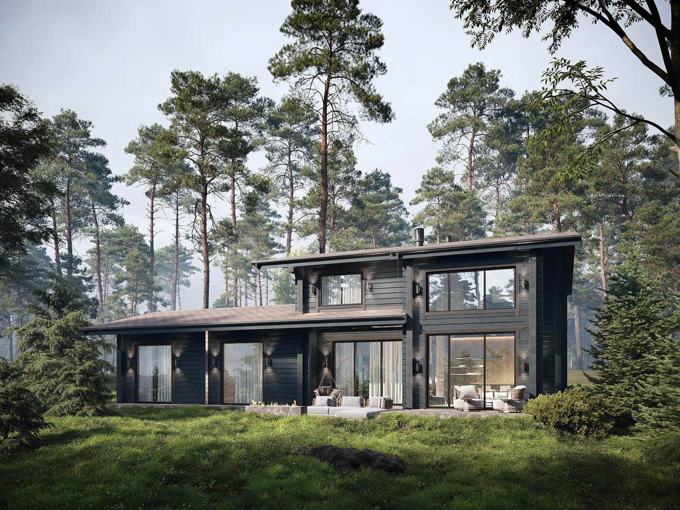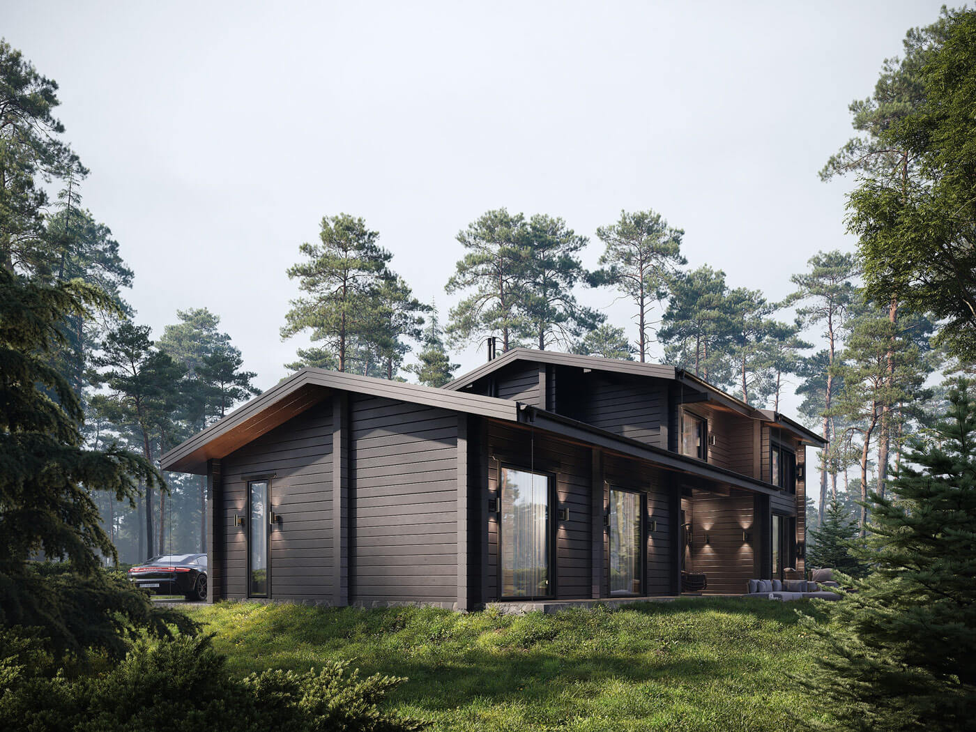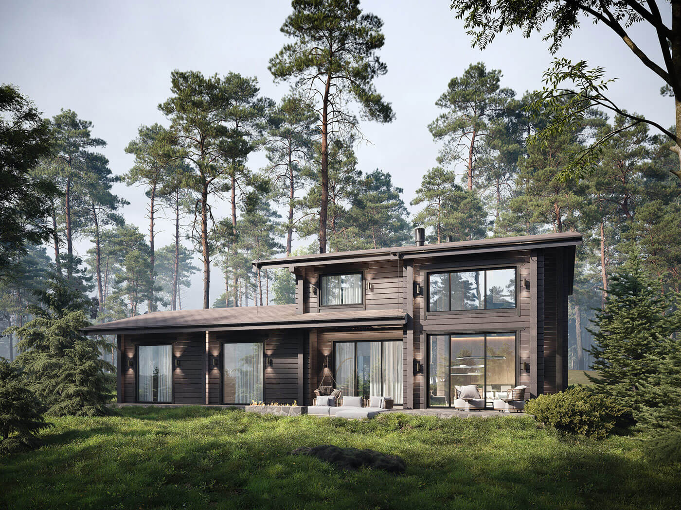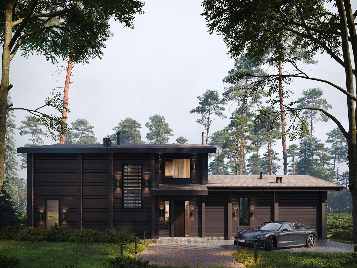 Дом из бруса с 4 спальнями, вторым светом и большими окнами представляет собой просторное и светлое жилье. Брус – это натуральный материал с хорошей теплоизоляцией, что делает дом уютным в любое время года.