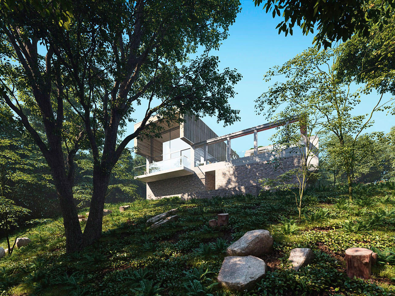 Дом находится на горе, на краю Сочинского национального заповедника. Мягкий климат региона и сложный рельеф участка стали основой этого проекта, и его архитектура пребывает в тесной связи с окружающей природой.