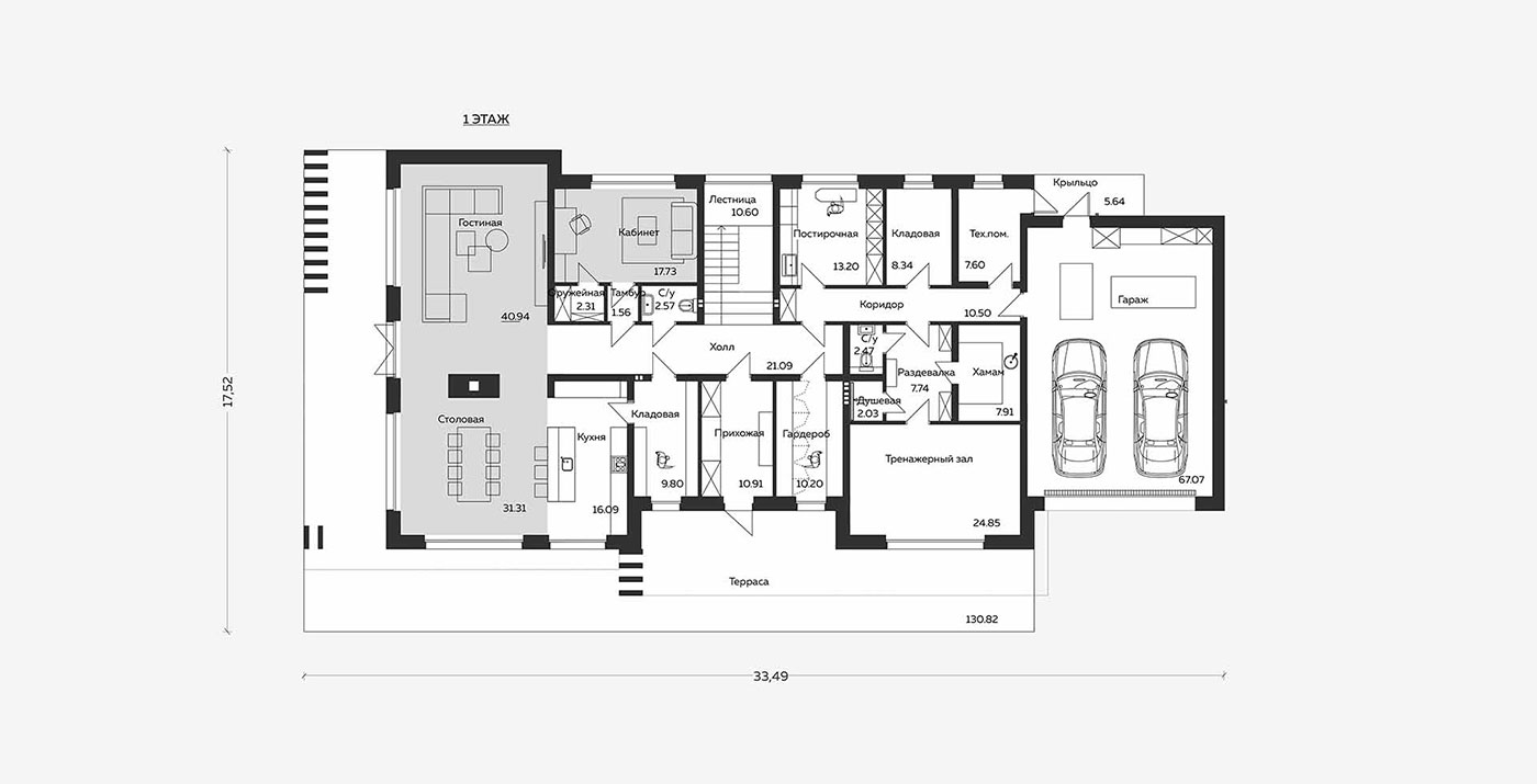 Общая площадь дома — 524 кв.м.