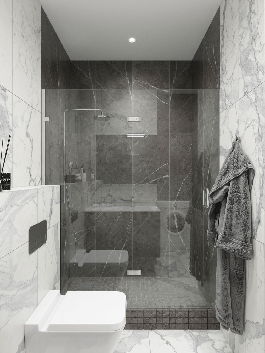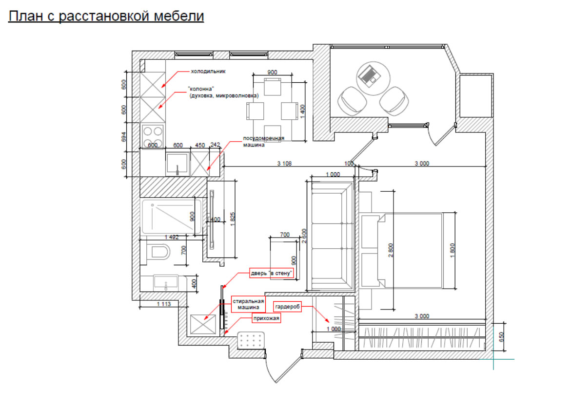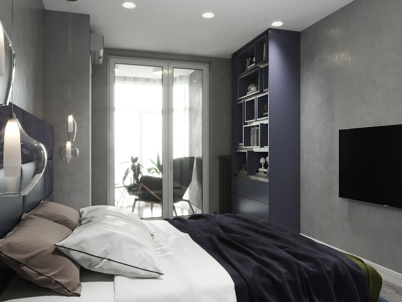 Заказчик — молодой целеустремленный юрист, необремененный семьей, но планирующий ее создание. При разработке проекта было решено изначально однокомнатную квартиру превратить в двухкомнатную, обустроив компактный санузел, просторную спальню с лоджией и объединив в одном помещении функции гостиной и кухни.