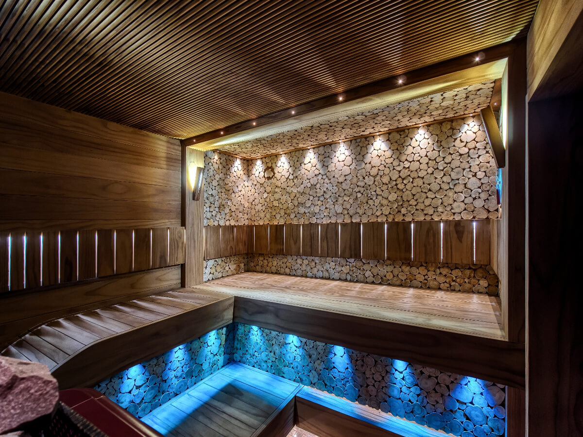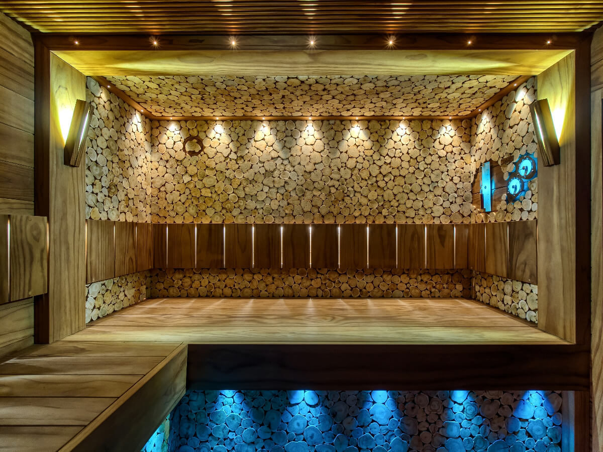 Любовь к исконно русским традициям попариться с веником от души нашла свое место в правой части парной, где расположится хорошо освещенный просторный лежак. Спилы можжевельника вокруг погружают в состояние гармонии с природой и дают невероятный аромат, выделяя целебные эфирные масла, запах которых сложно с чем-либо спутать.
