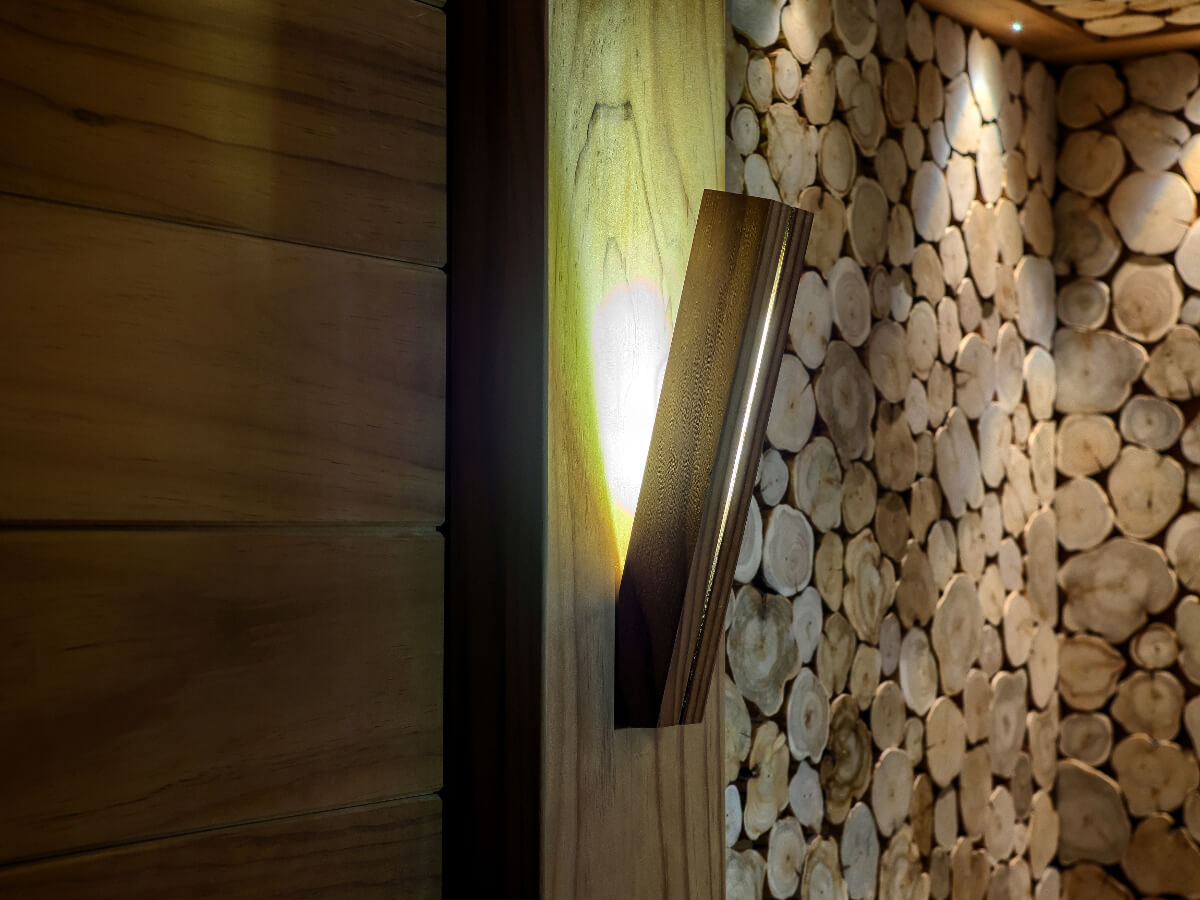 Вторая сторона — полная противоположность. Это оазис уединения, тишины и полной расслабленности, в которую погружает анатомический лежак, плавно переходящий из парильного. Здесь нет места для шумных процедур и разговоров, а приглушенный свет в сочетании со свето-терапией позволяет долгое время проводить в размышлениях о чем-то важном или наоборот освободить свою голову от мыслей и получать релакс под шум волн или звуков природы, которые воспроизводит акустическая система, установленная под пологами. Световое панно отличается невероятной красотой во время свечения и поражает мерцанием граней при смене цветов.