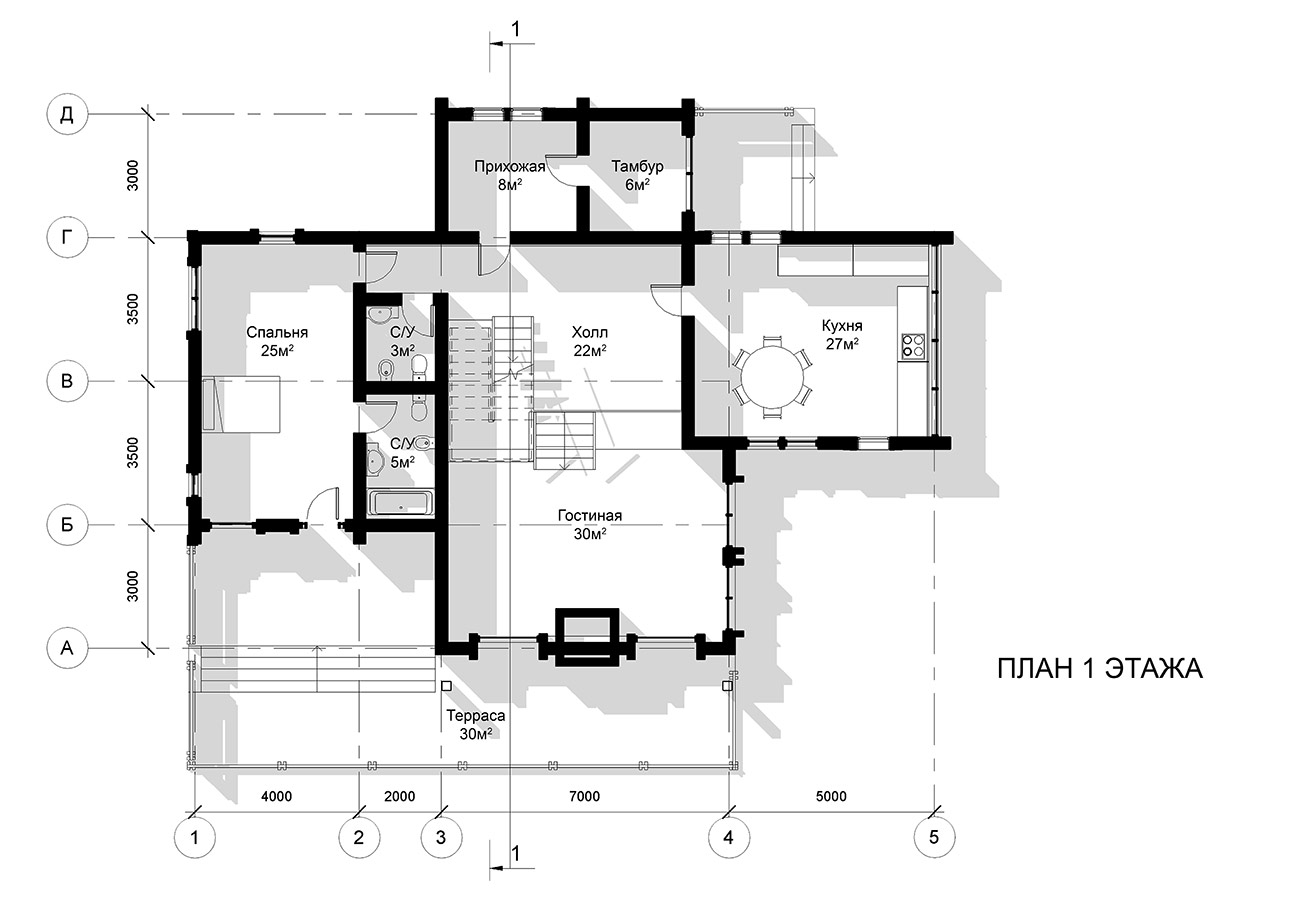 Открытая обширная терраса также способствует лучшему освещению дома в течение дня, помогает удобно и комфортно организовать пространство около дома.