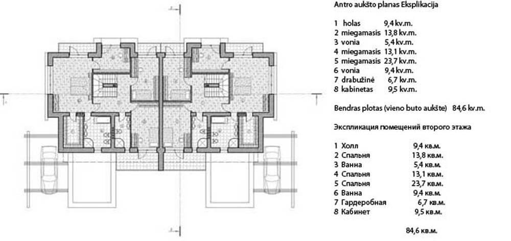 Общая площадь 2-го этажа — 84,6 кв.м.