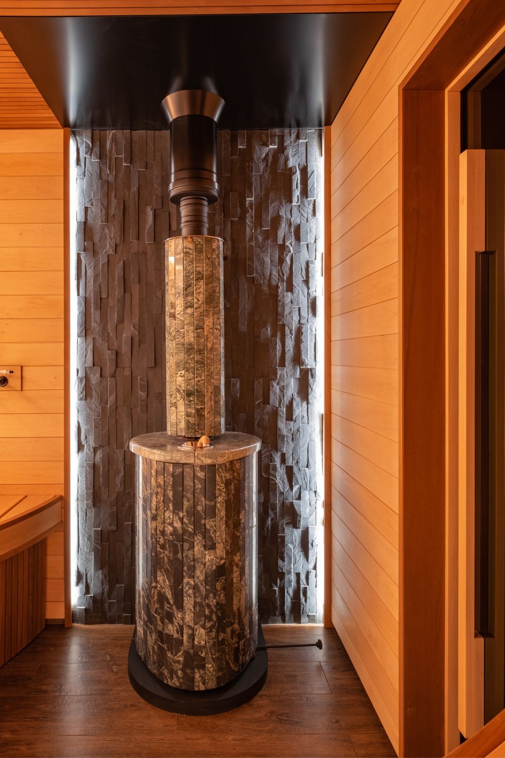 Основой бани является печь Ферингер Оптима в облицовке из жадеита.