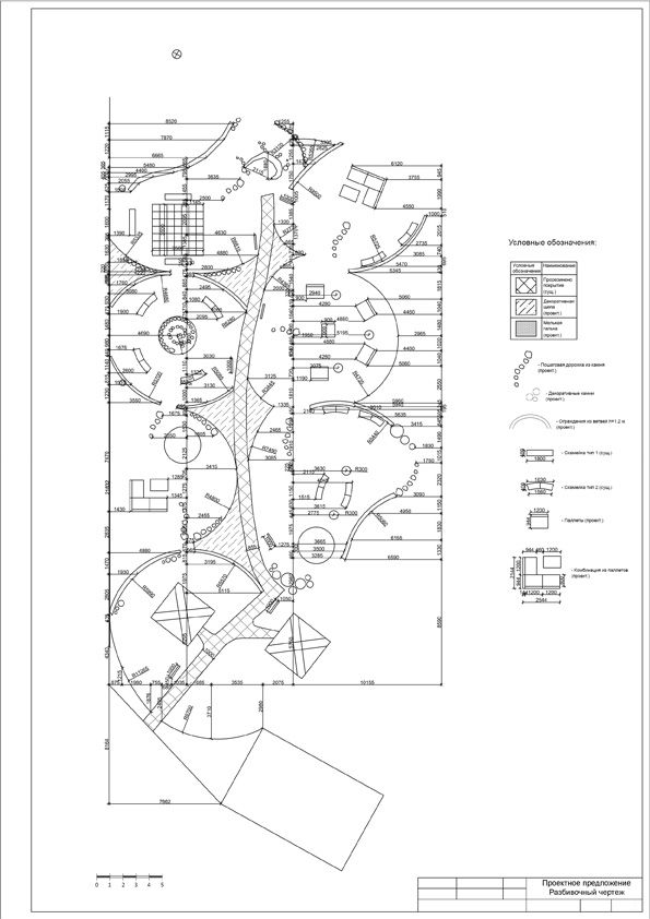 Проектируемый участок расположен на территории детского лагеря «Созвездие», имеет вытянутую форму с выраженным уклоном с запада на восток. Данный участок находится перед входом на территорию лагеря, поэтому его основная функция — место встречи родителей и детей, зона отдыха.