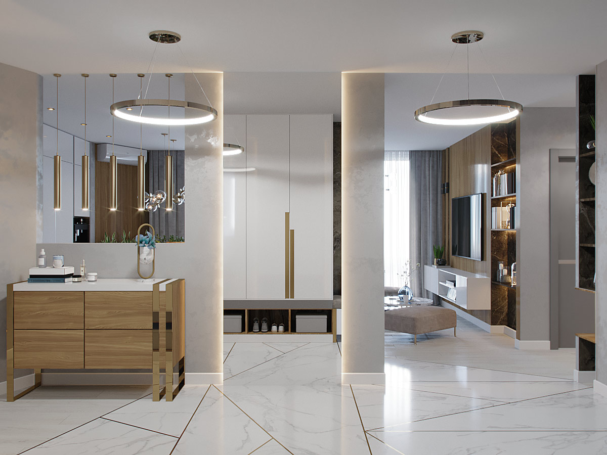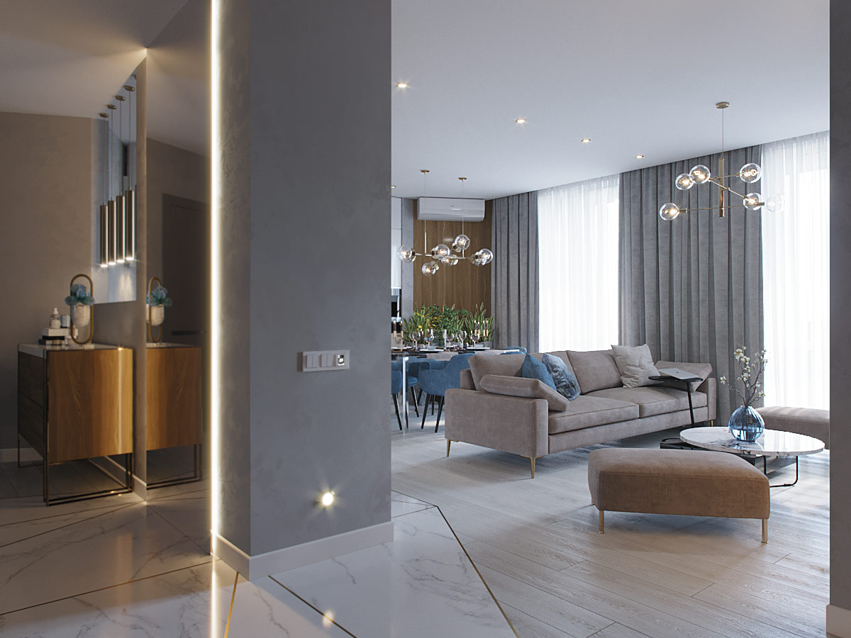 Интерьер пятикомнатной квартиры, расположенной в жилом комплексе «Дружба» в г. Минске, сочетает в себе элегантность и современный дизайн. Строгие линии и формы, функциональные и практичные отделочные материалы с выразительными текстурами создали комфортную обстановку, где приятно находиться, отдыхать и принимать гостей.