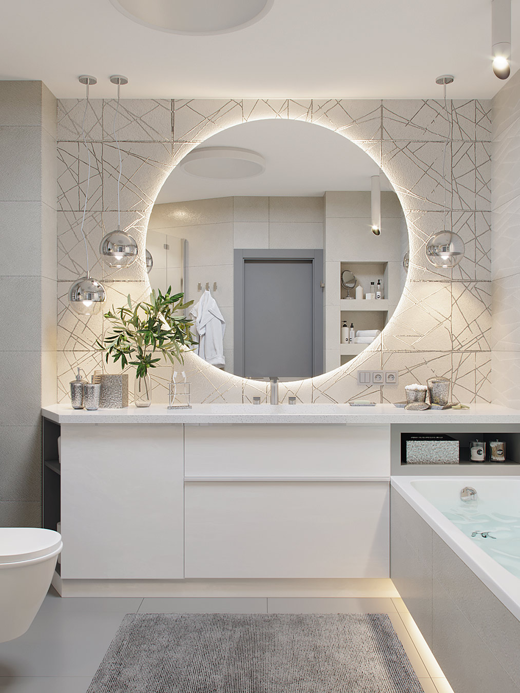 Все помещения оформлены в рамках одной стилистической концепции и имеют единое цветовое решение. Интерьер с ярко выраженной индивидуальностью сочетает в себе абсолютный комфорт и респектабельность, отражая творческий почерк дизайнера. Современный стиль приобрел в этом проекте легкость и изысканность.