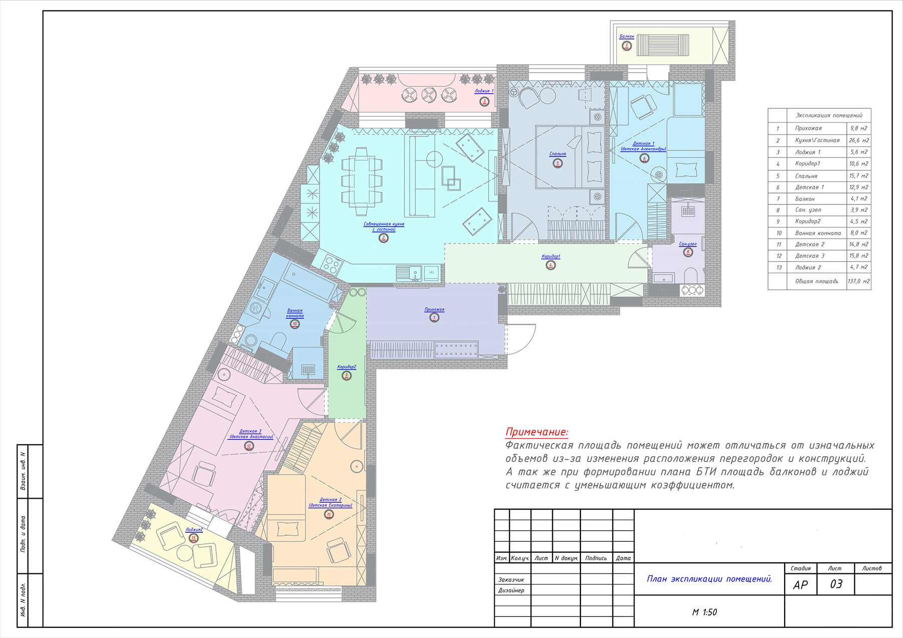 Пожелание заказчиков сделать из четырехкомнатной квартиры пятикомнатную и ее нестандартная изначальная конфигурация подсказали дизайнеру неординарную планировочную идею. Так появилась «окошко» между кухней и прихожей.