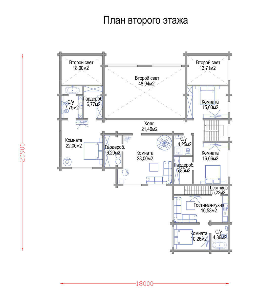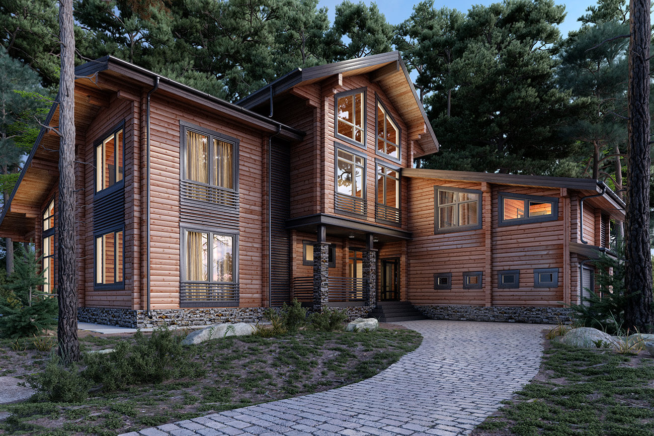 Просторный и харизматичный дом из клееного бруса габаритного размера 24 х 20 м с пятью спальнями — «ЭлинХаус» впечатляет сочетанием своих размеров, внешней изысканностью и внутренней функциональностью. Дом прекрасно подойдет для комфортной жизни или отдыха большой семьи, любящей принимать добрых гостей.