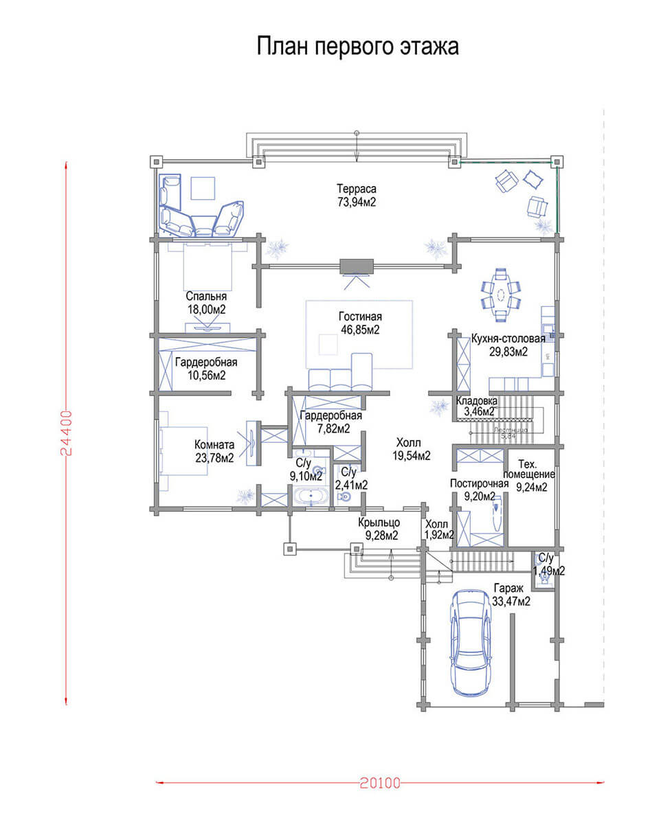 Габаритные размеры — 20,1 x 24,40 м.