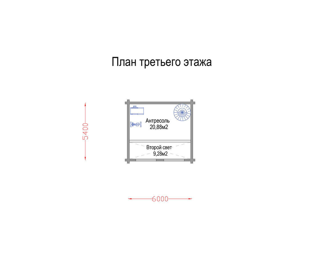 На третьем этаже — мансардная антресоль со вторым светом.
