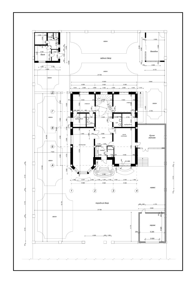 Проект выполнен для большой семьи, живущей в Краснодаре. Помимо самого дома на участке есть летняя кухня, шашлычная, баня и гараж. Площадь дома 500 кв. м (2 этажа и цоколь).
