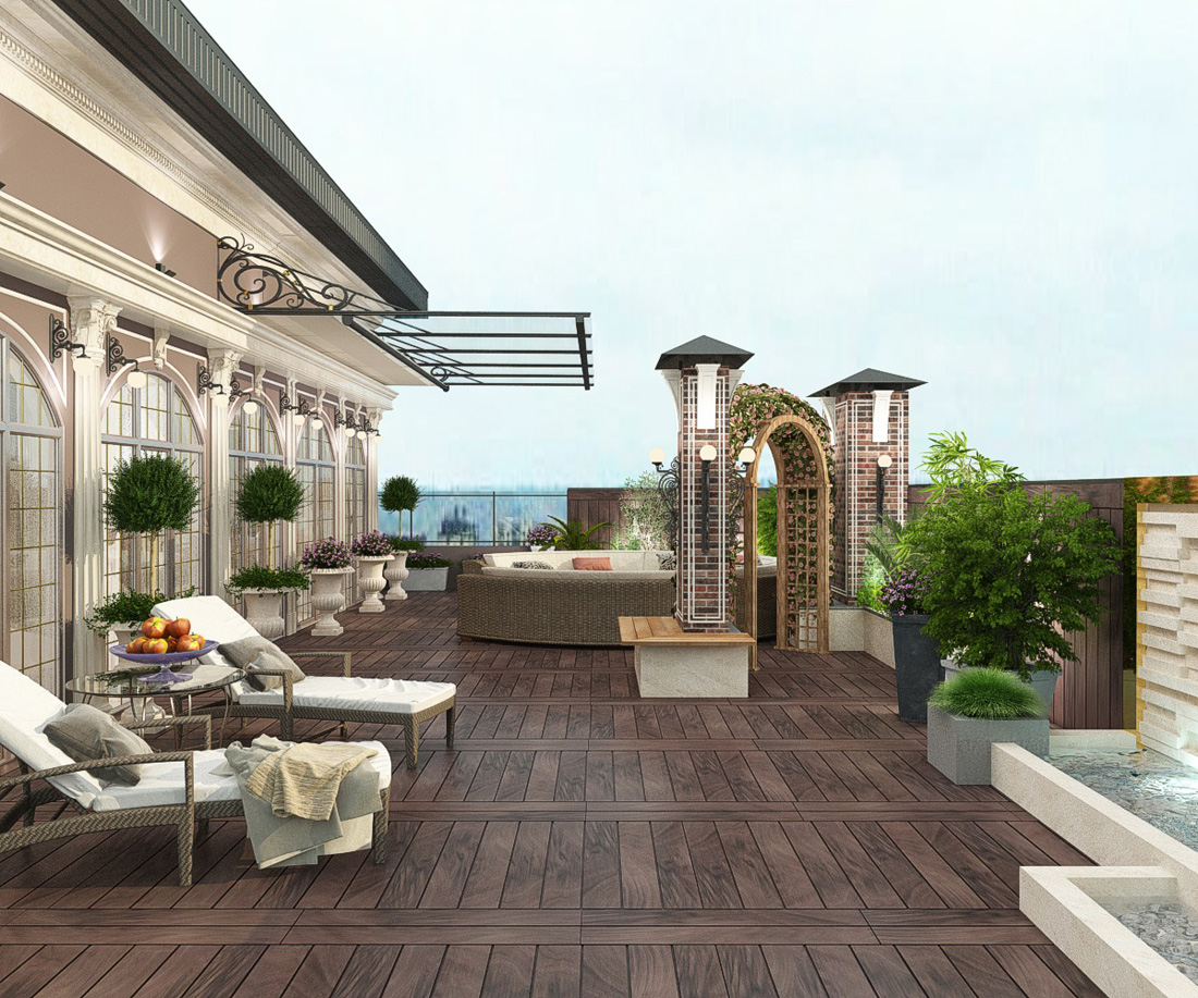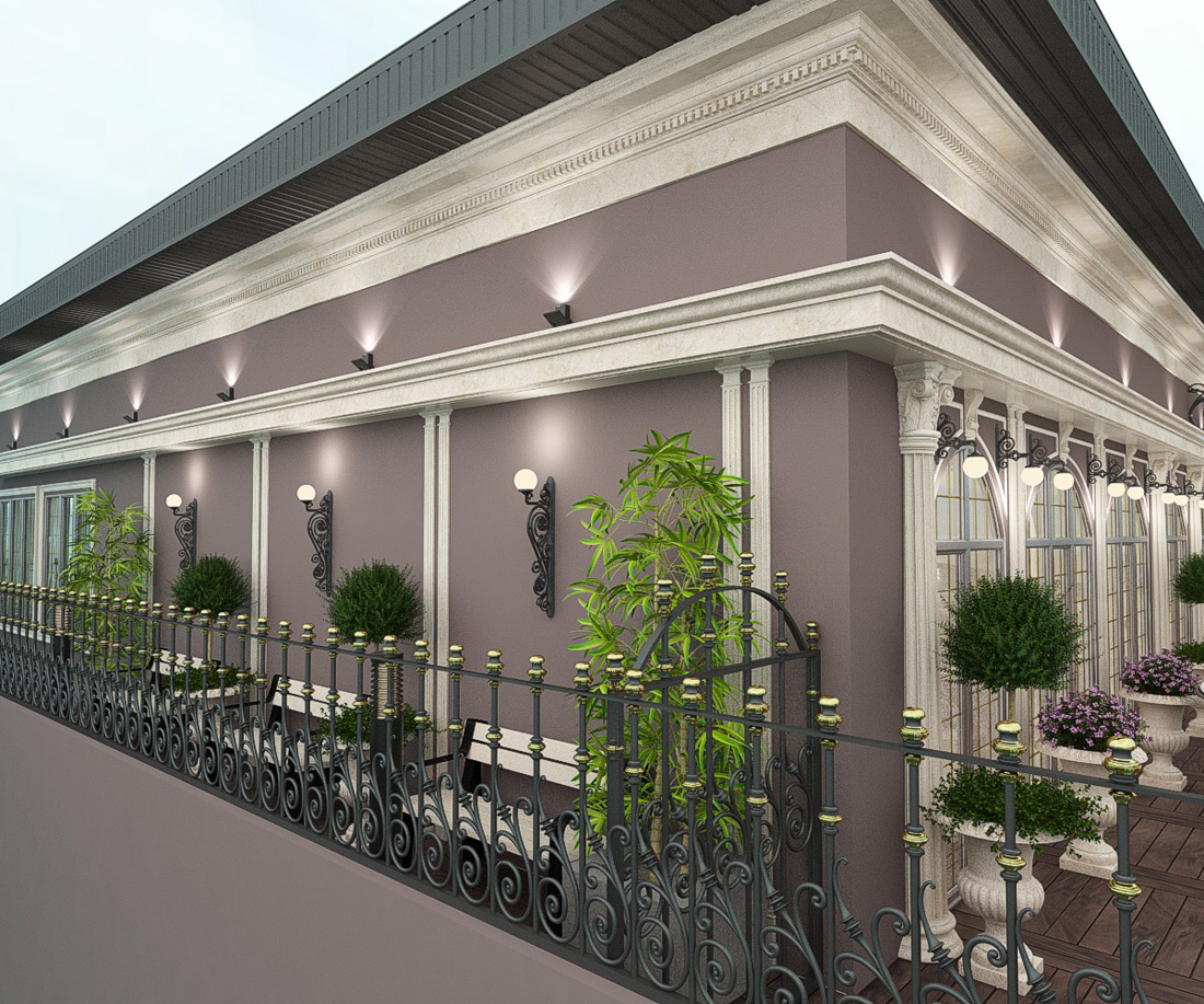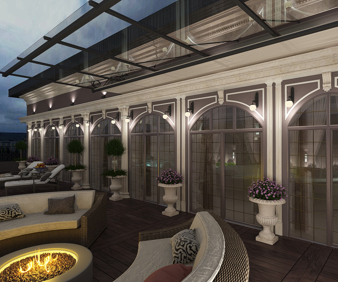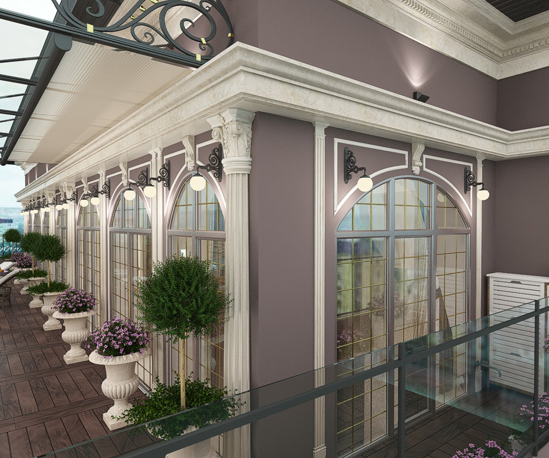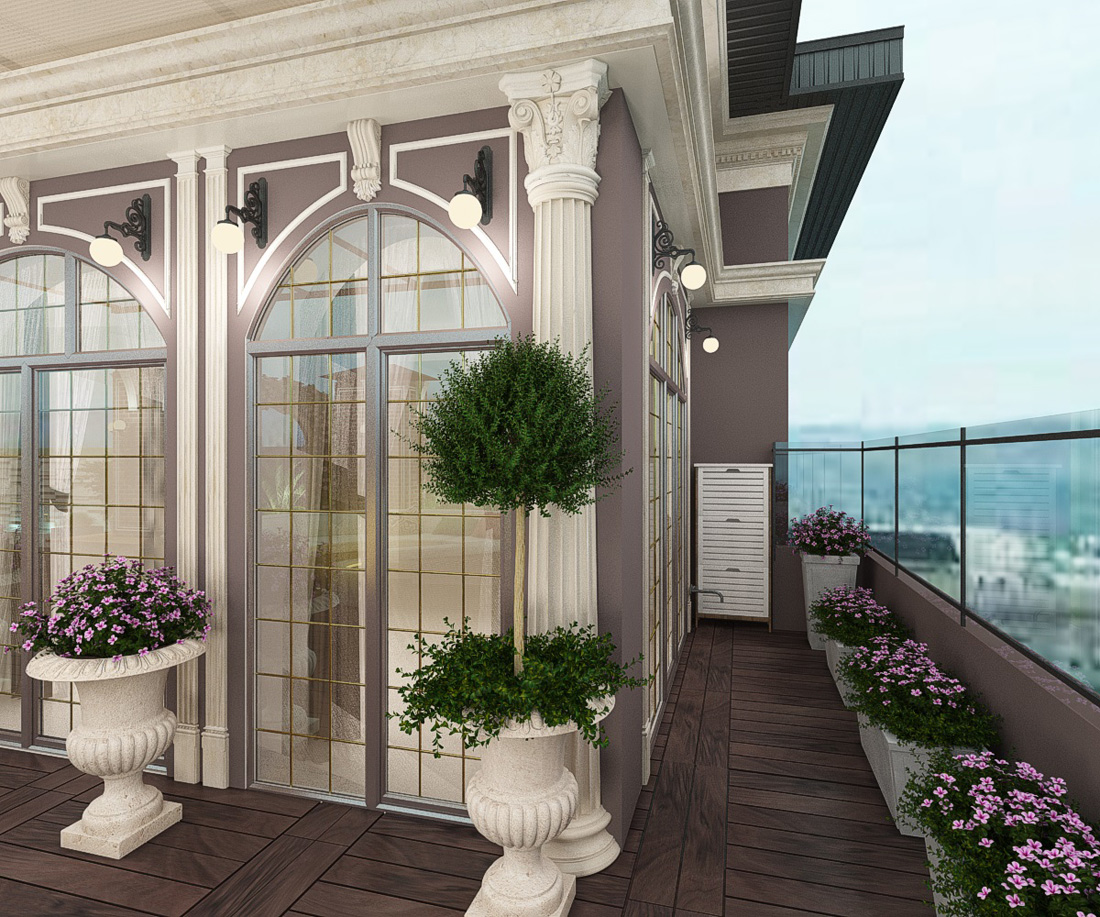 Дизайн фасада квартиры с выходом на террасу в классическом стиле — это давняя заветная мечта заказчиков, многодетной семьи.