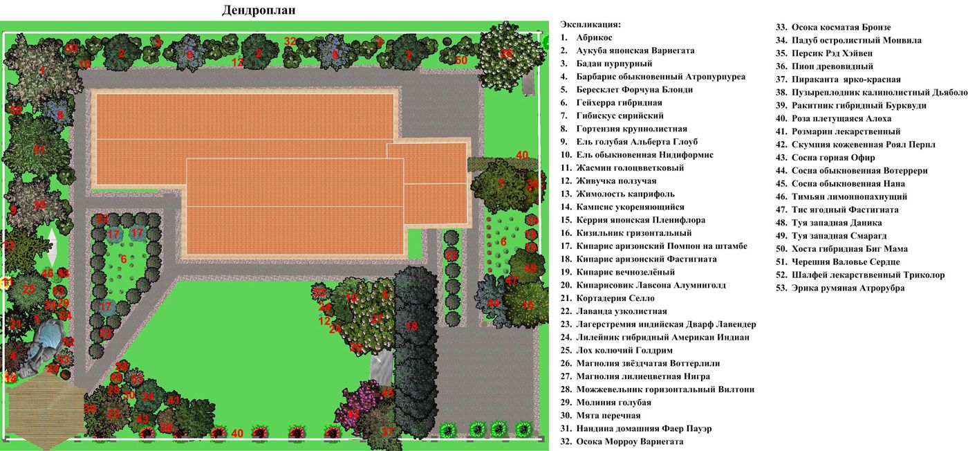 Растения на участке подобраны с учетом климатических особенностей региона и круглогодичной декоративности.