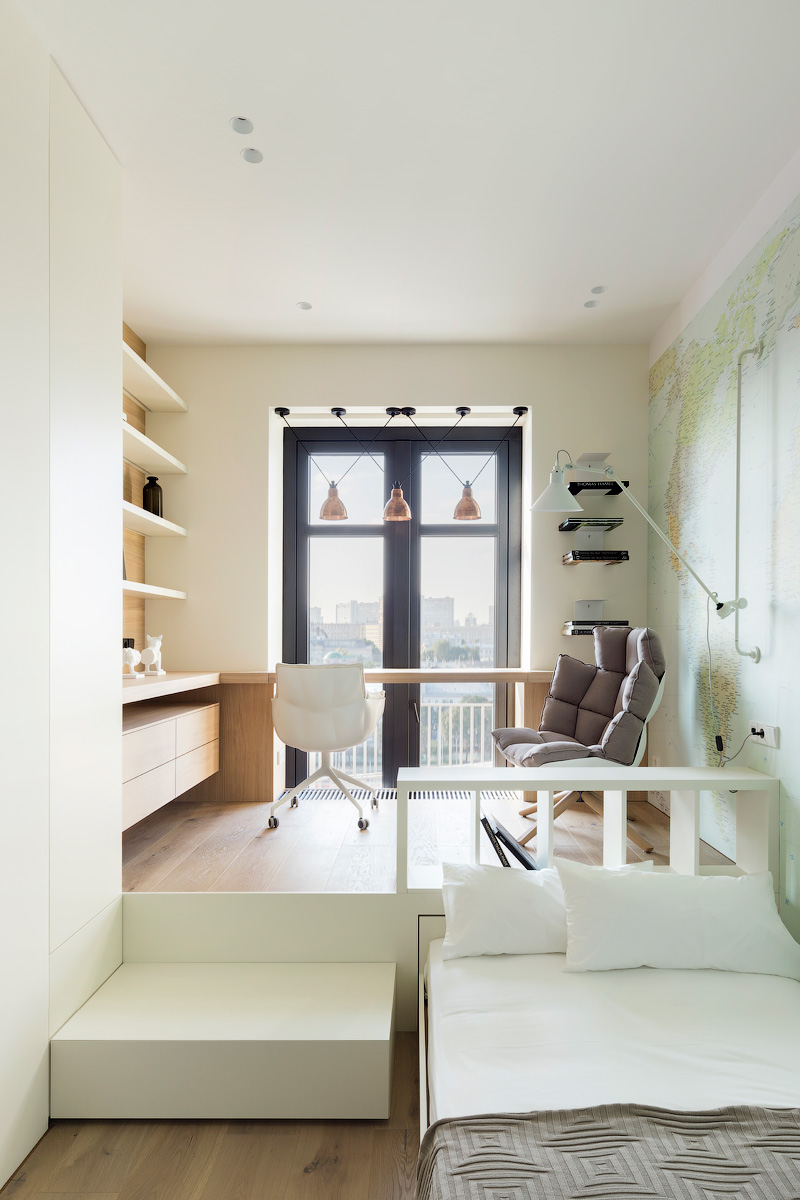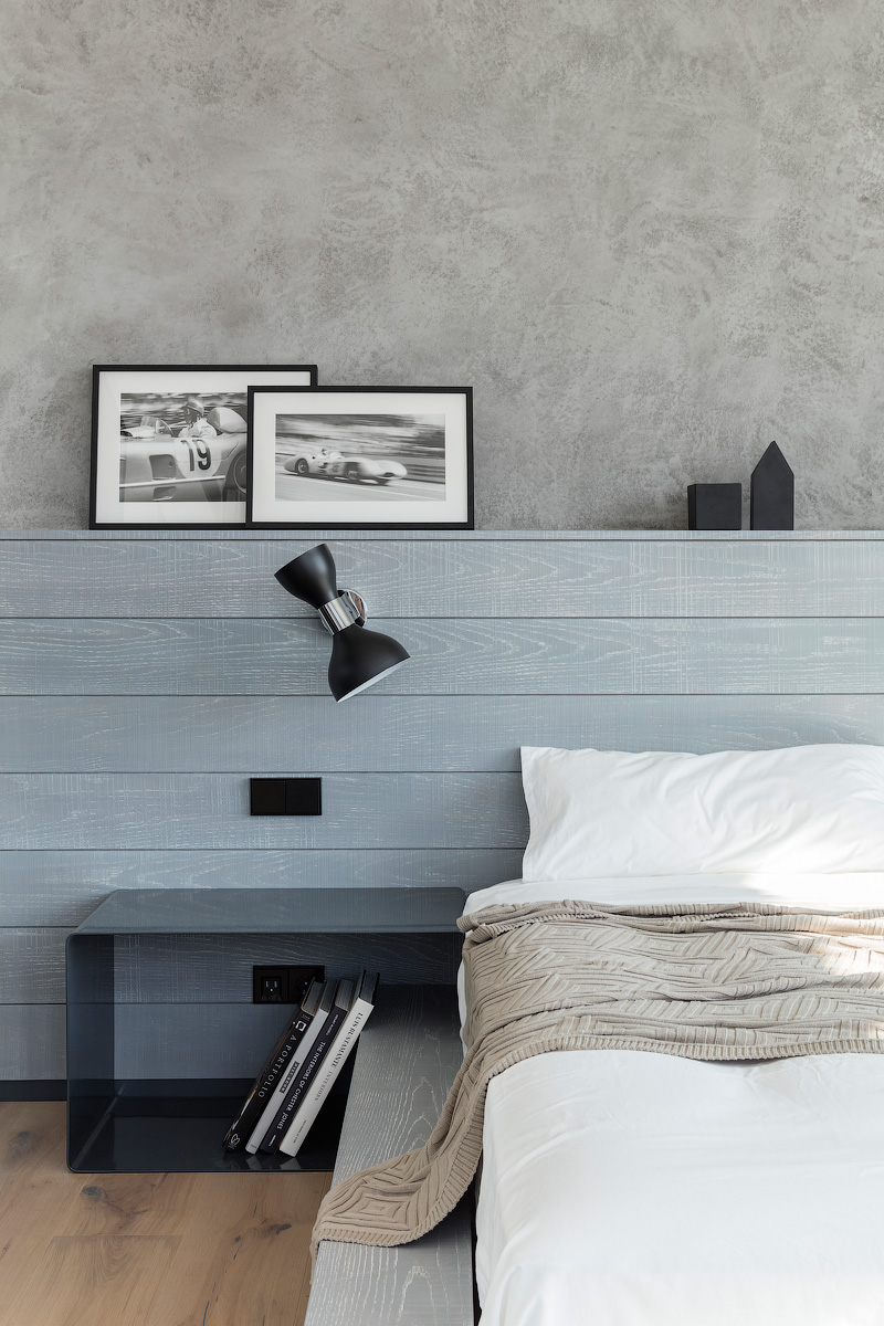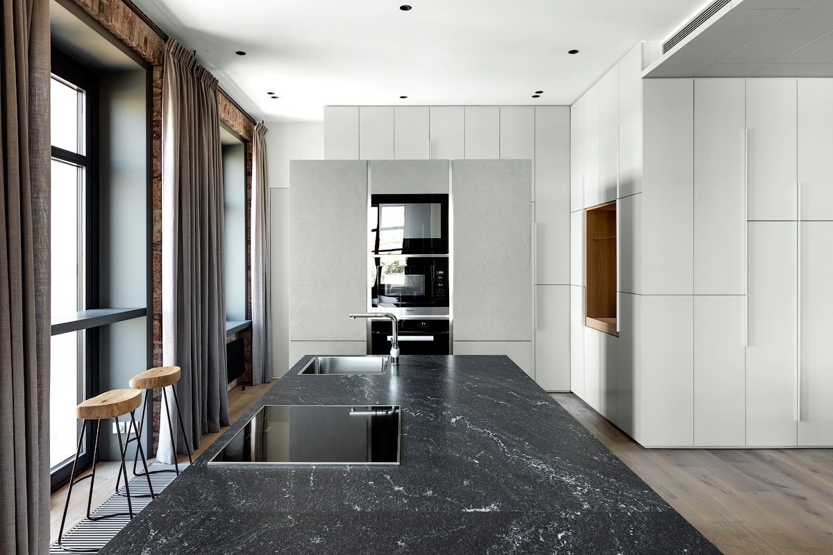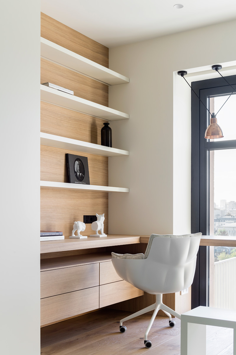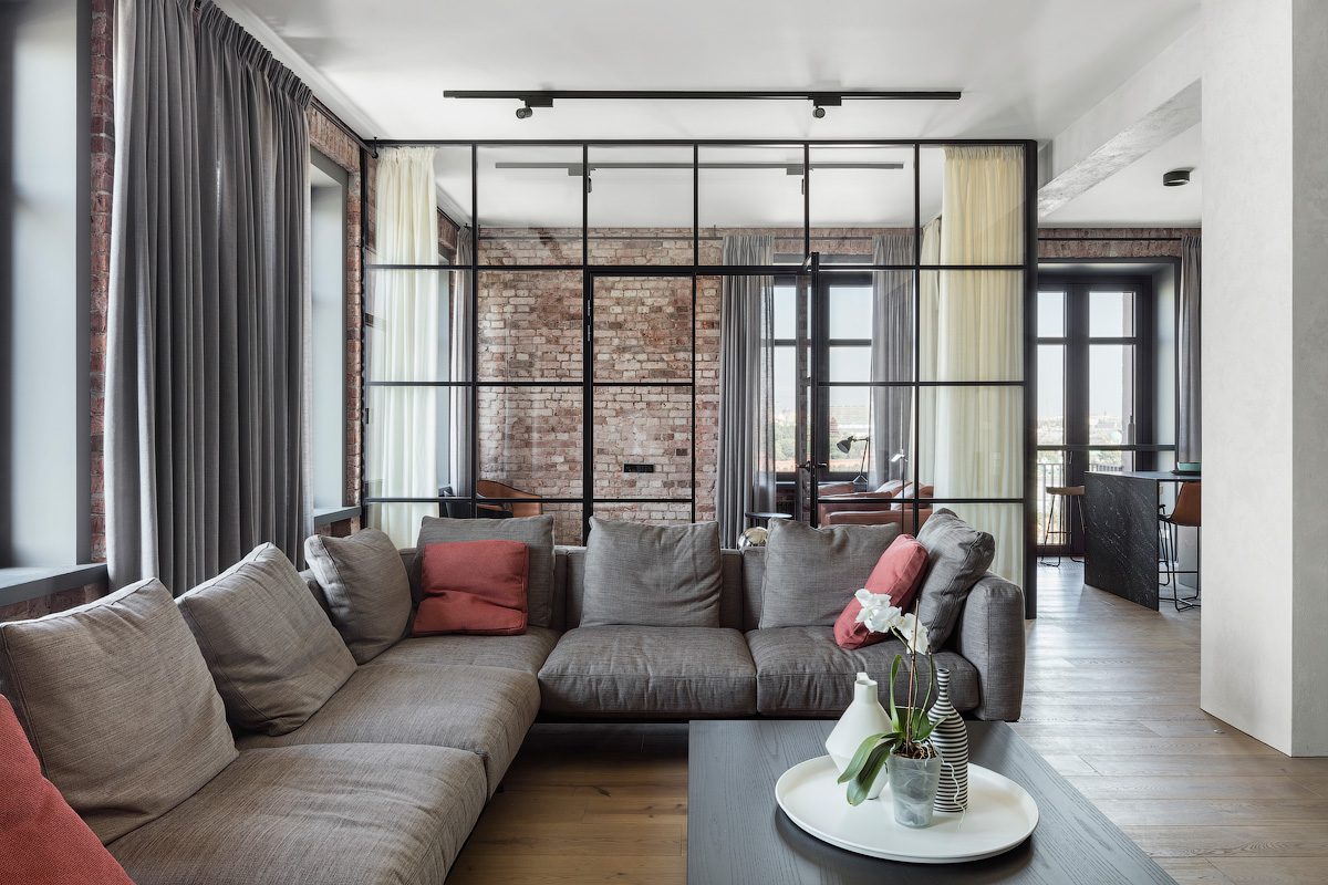 Квартира расположена в самом центре Москвы в Доме на набережной. Это жилой комплекс на Берсеньевской набережной Москвы-реки 1931 года постройки. Из квартиры открывается панорамный вид на исторический центр города: на Храм Христа Спасителя, набережную Москвы-реки, Кремль. Интерьерное решение пространства – это микс минимализма с элементами лофта. Квартира площадью 224 м² вмещает в себя гостиную-кухню-столовую, кабинет, 5 спален, 3 с/у и постирочную.