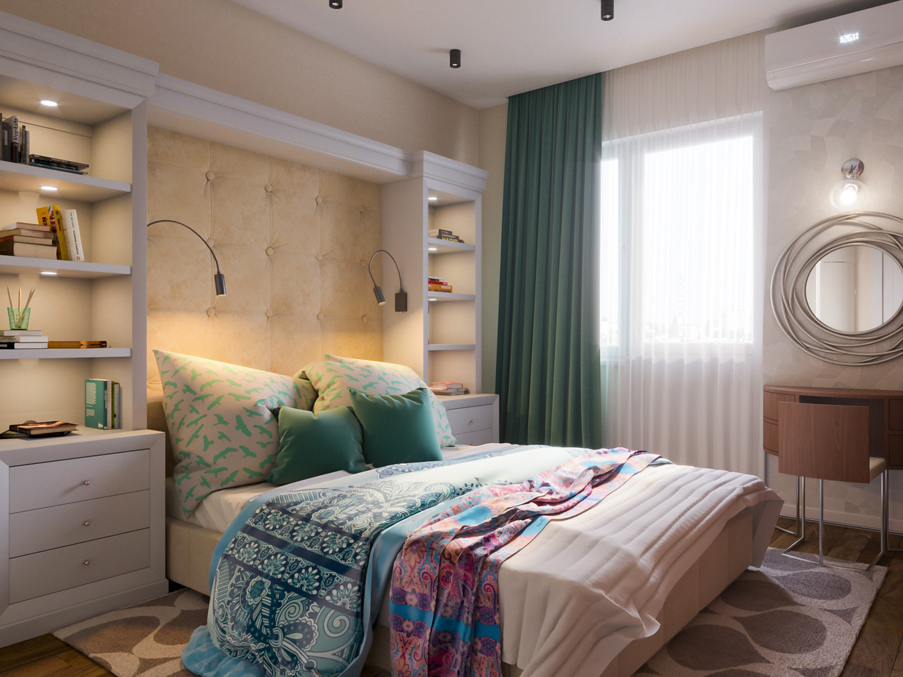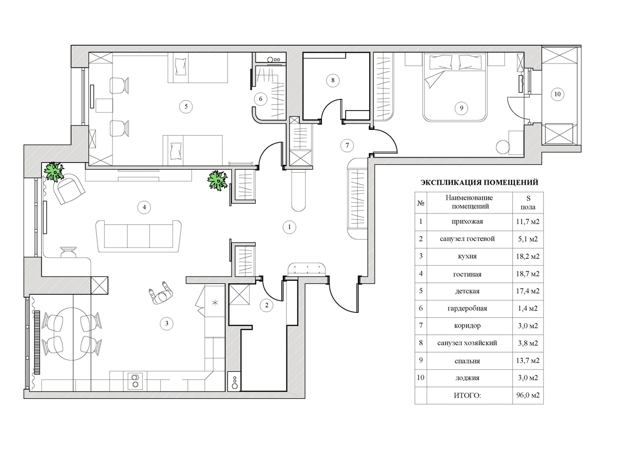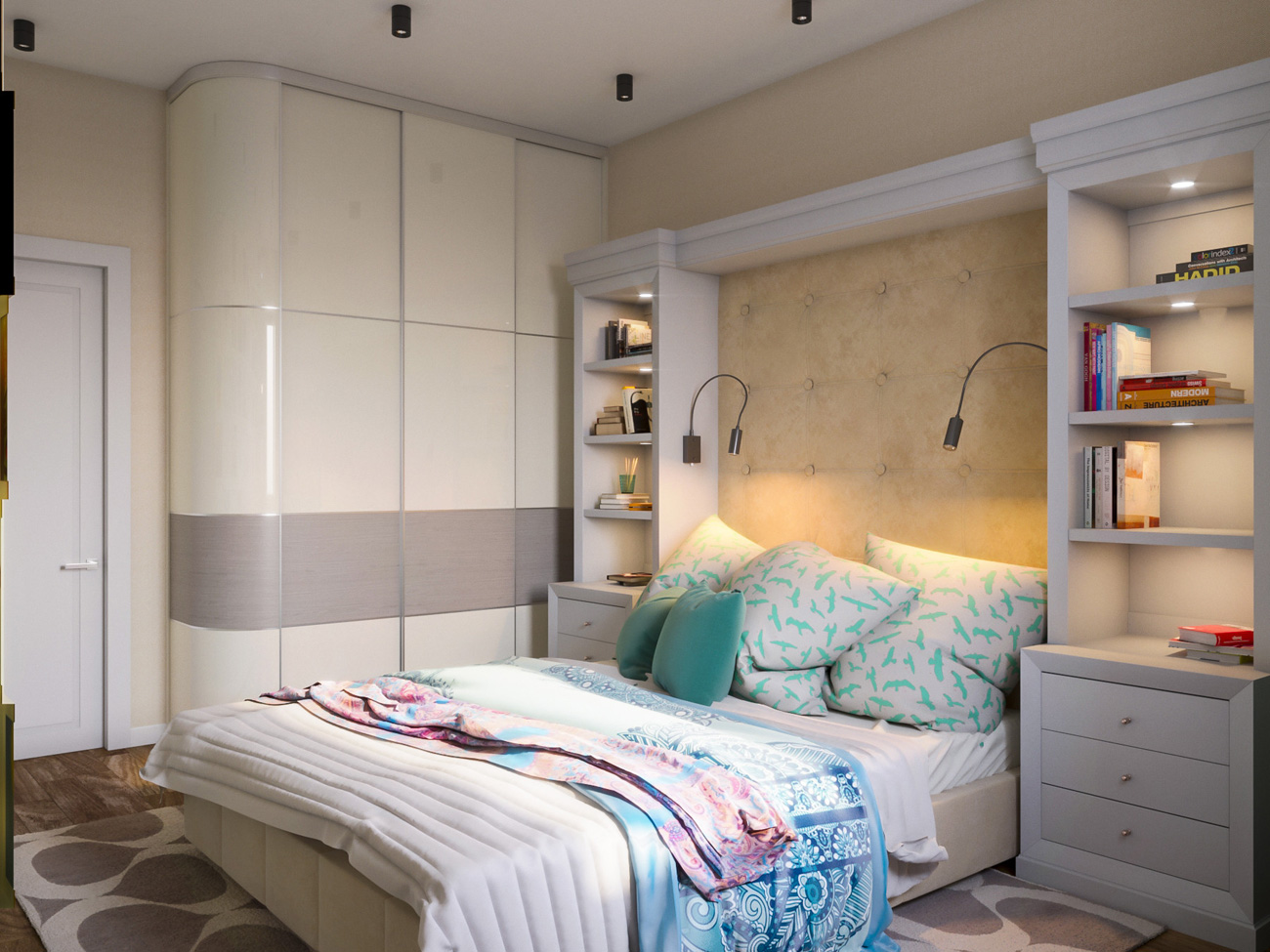 Квартира была спроектирована для молодой семьи с высокими требованиями к функциональному использованию жилой площади, поэтому изначально наряду с основной концепцией пространства требовалось продумать места для хранения.