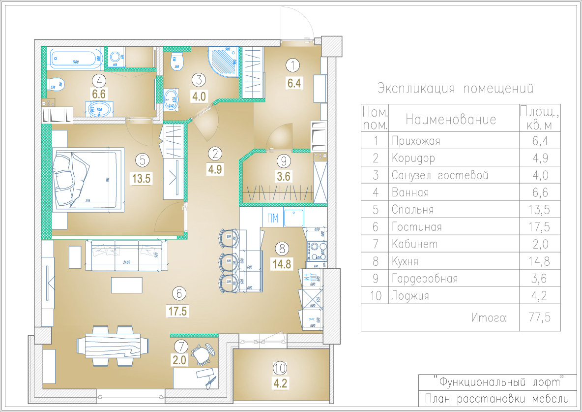 Сложность при разработке дизайн-проекта квартиры со свободной планировкой заключалась в том, что на достаточно большую имеющуюся площадь — почти 78 м² — приходилось всего лишь два окна, выходящих на одну сторону.