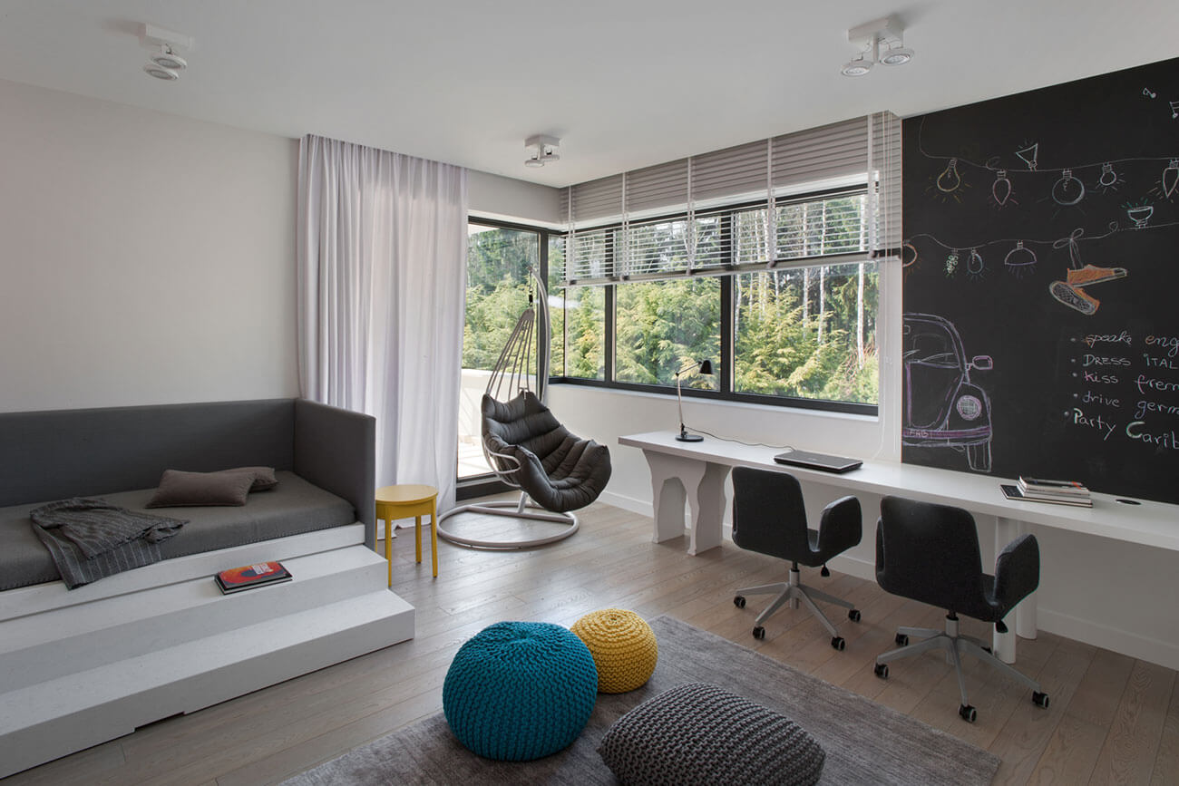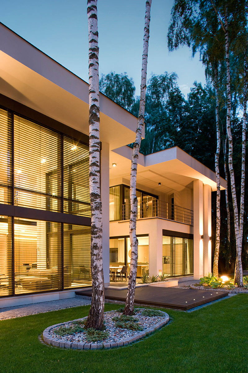Частная двухэтажная резиденция площадью 698 кв. м расположена в пригороде столицы Польши Варшавы.