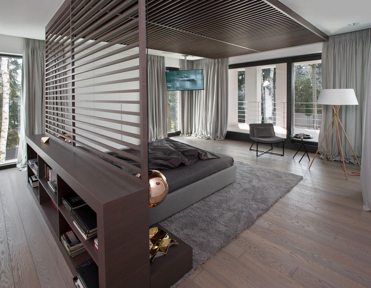 Проект «Гармоническая триада» создан для людей, которые высоко ценят комфорт, современность и оригинальность. Дом прекрасно вписывается в ландшафт в тихом лесном районе. Большая площадь остекления дома обеспечивает оптимальное естественное освещение помещений и прекрасный вид на окрестности.