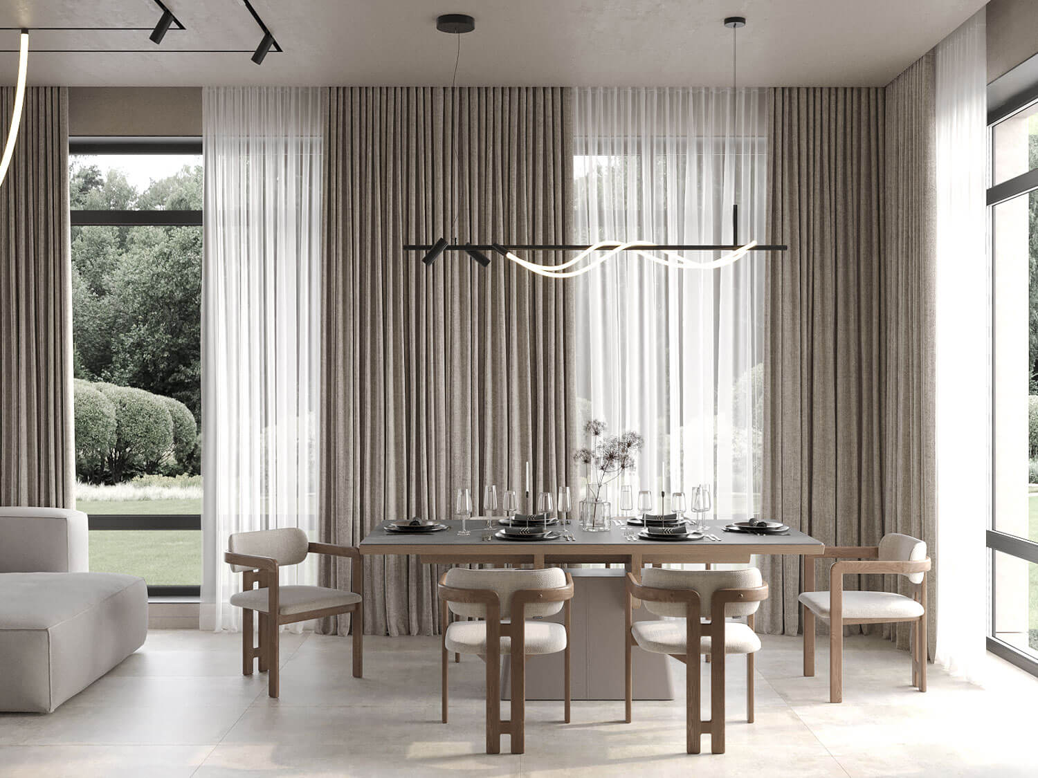 Каждый уголок этого загородного дома продуман до мелочей, и его интерьер отражает современный подход кжизни, объединяя функциональность, стиль и гармонию с природой.