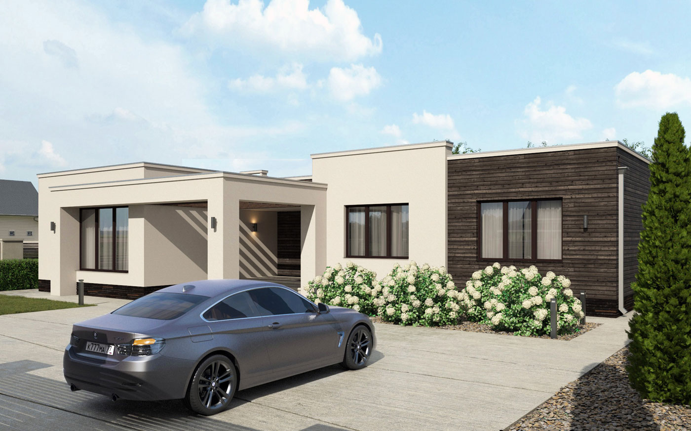 Вместо кирпичного здания с шатровой кровлей на фундаменте установили деревянный энергоэффективный каркас с плоской кровлей и утепленной плитой в основании. Благодаря такому решению удалось полностью переделать проект интерьера.