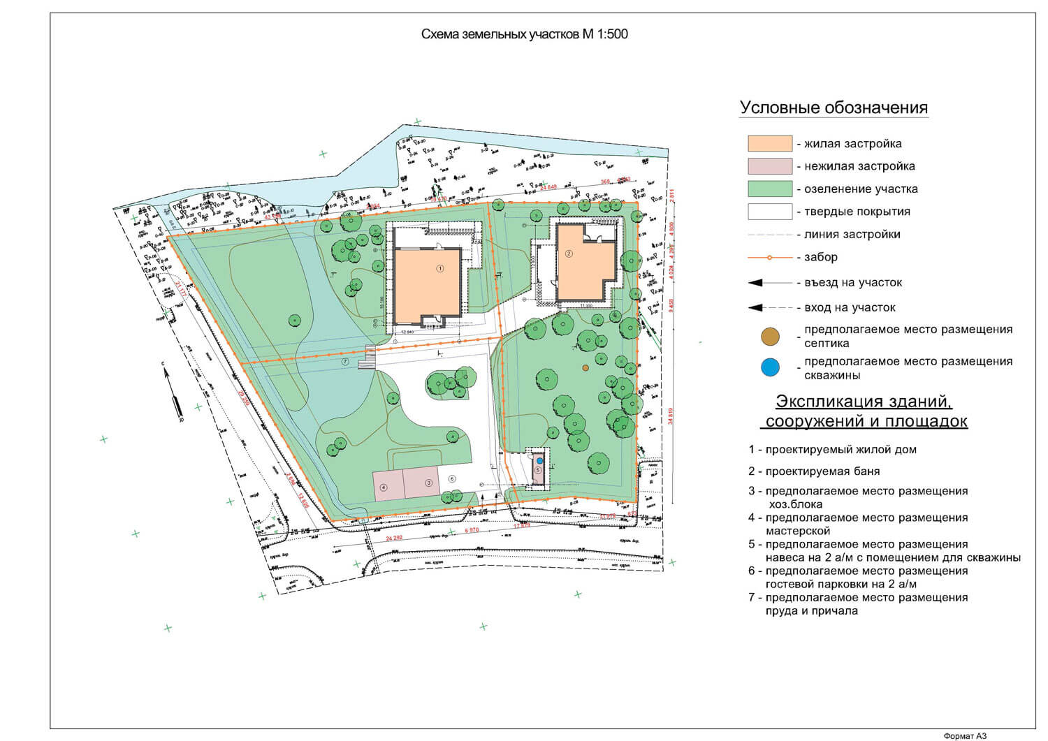 Общая площадь трех участков 46 соток. На участке находится небольшой пруд, и немного хвойных деревьев.