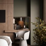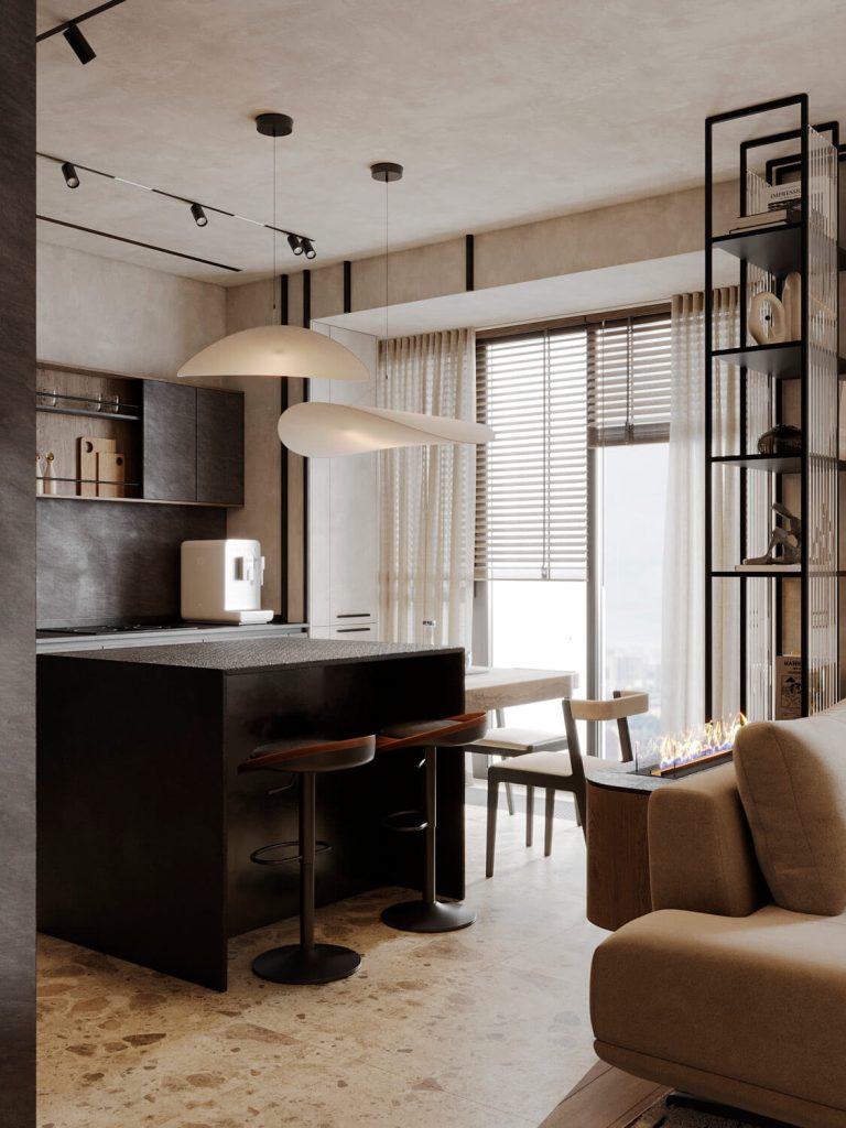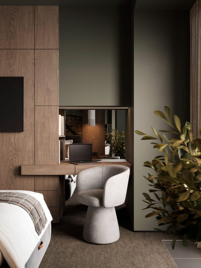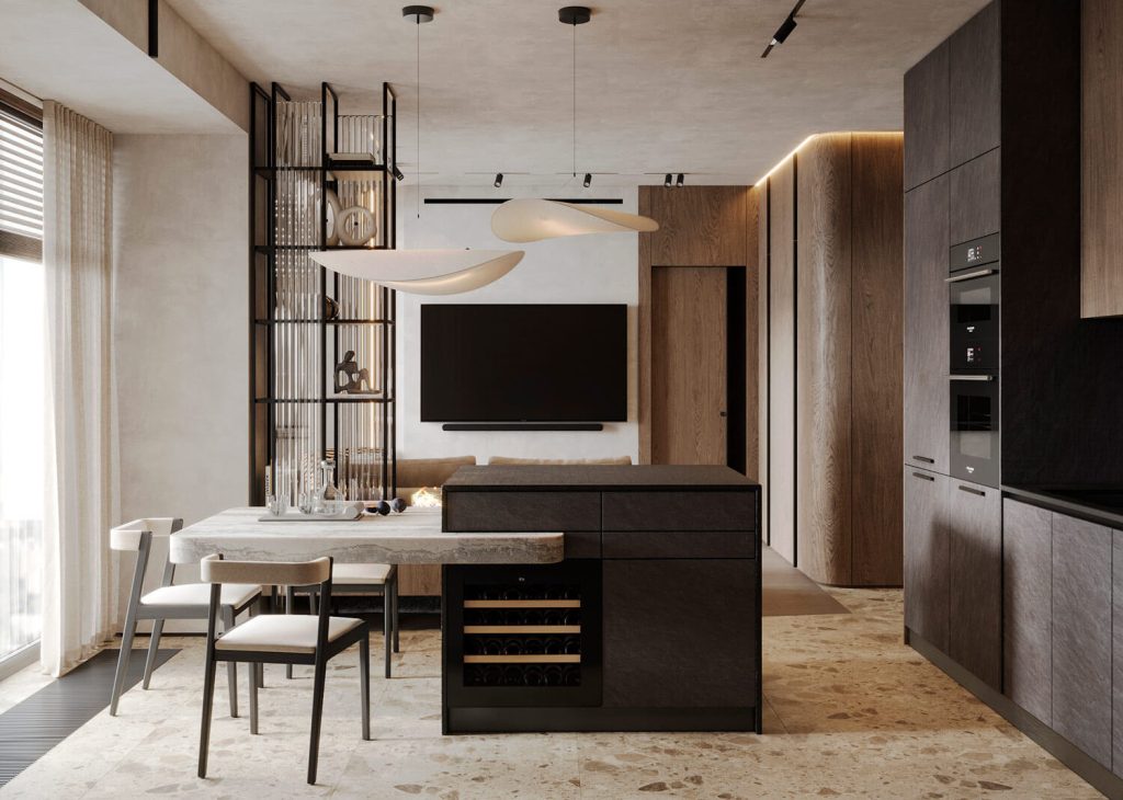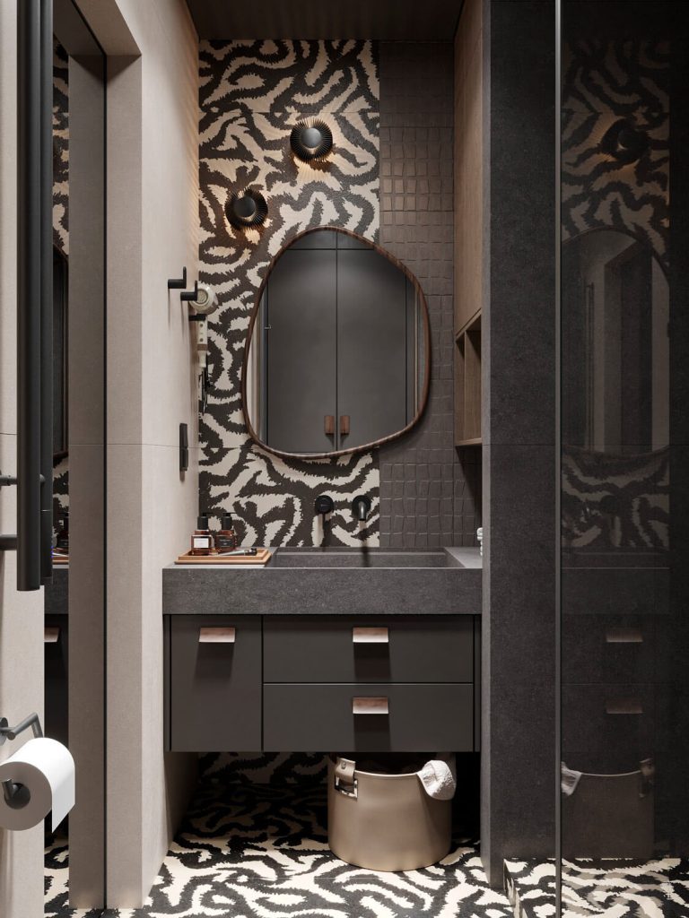 Приглушенные коричневые, песчаные, зеленые оттенки в сочетании с фактурой дерева и камня, анималистические принты, поддерживаемые этническим декором и атмосферными светильниками, завершают образ.