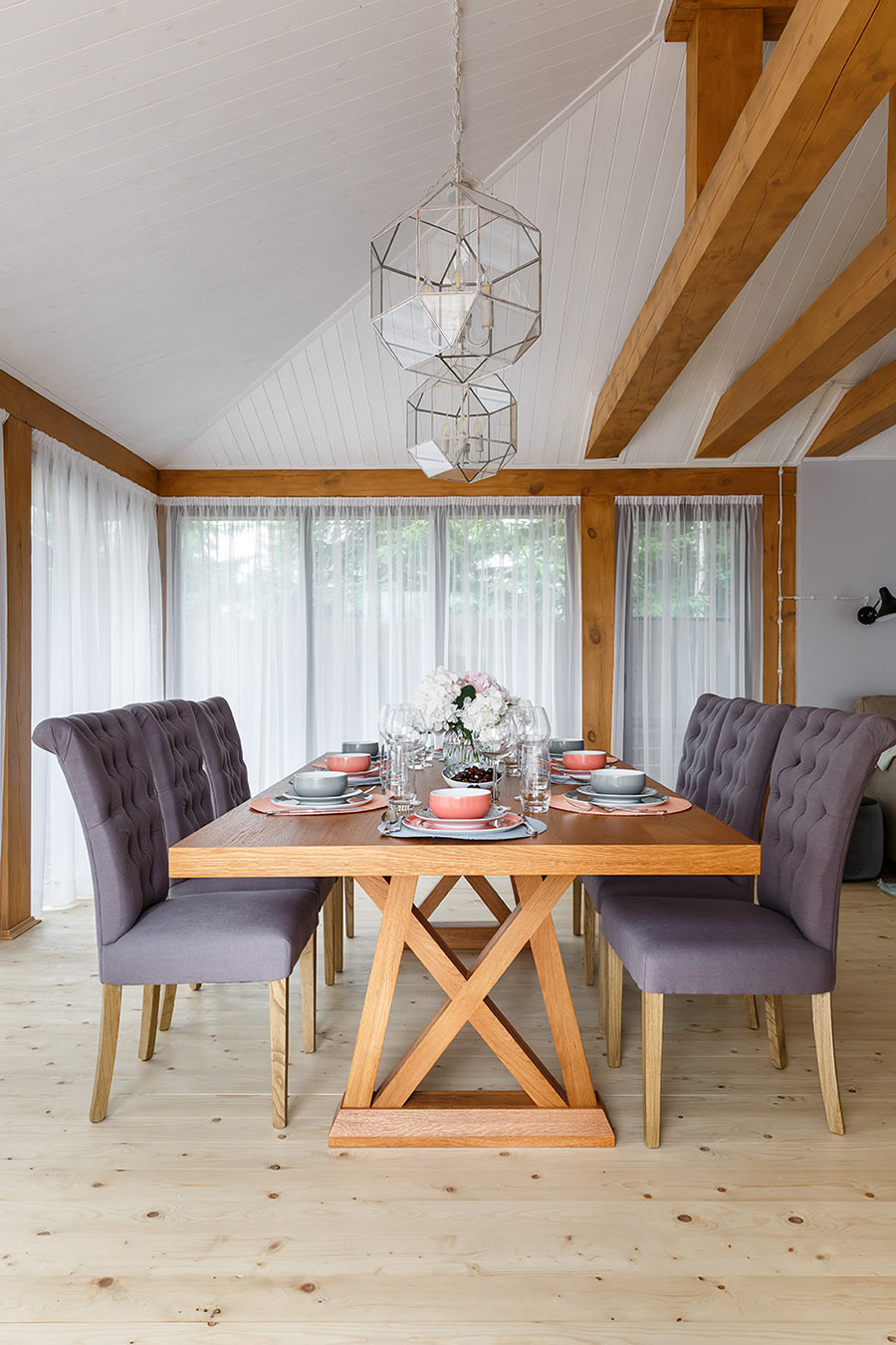 Большой удачей стала возможность вести объект полностью. Специалисты нашей студии создавали эскизный проект, архитектурно-строительный раздел, дизайн-проект интерьера, сопровождали все строительные и отделочные этапы, также занимались комплектацией и декорированием, например, посуда и столовые приборы, как и текстиль, подбирались специально для этого объекта. Все работы, включая проектирование, были проведены в течение пяти месяцев.